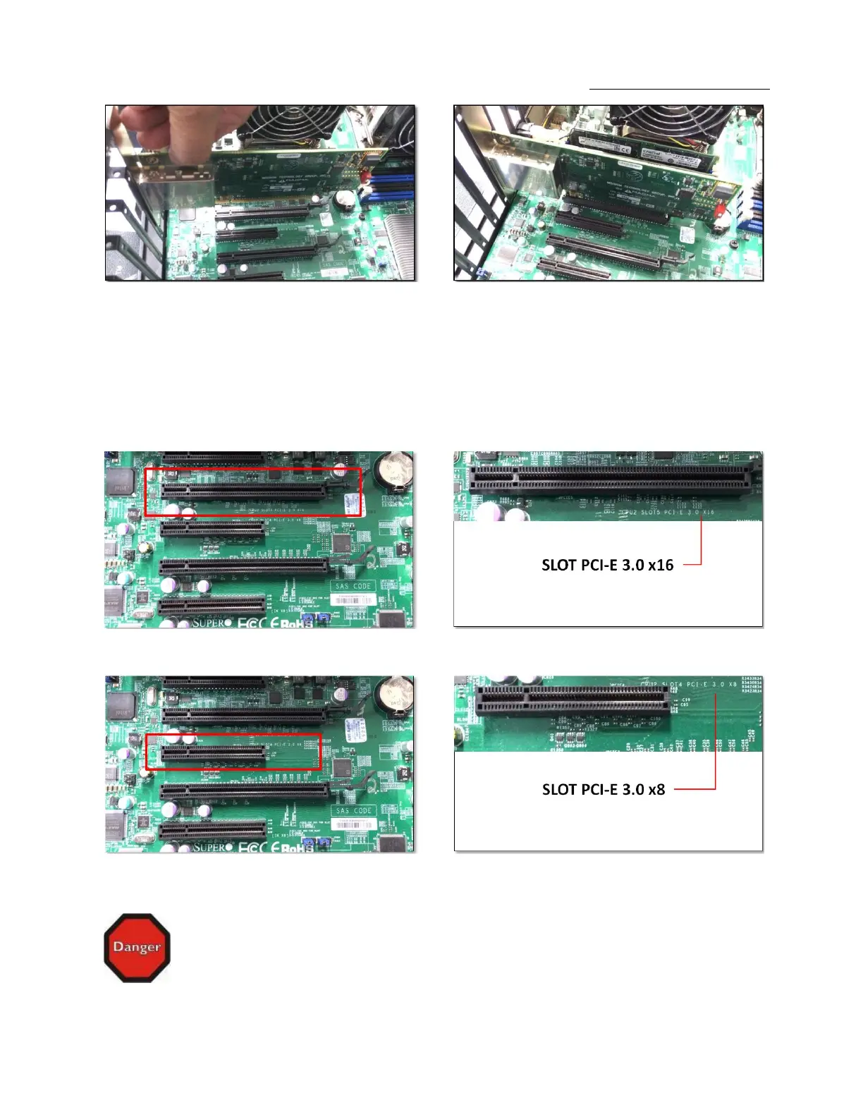 Refer to PAGE 21 for configuration purposes of the PCIe card. The number of lanes is typically noted on a motherboard computer next to the