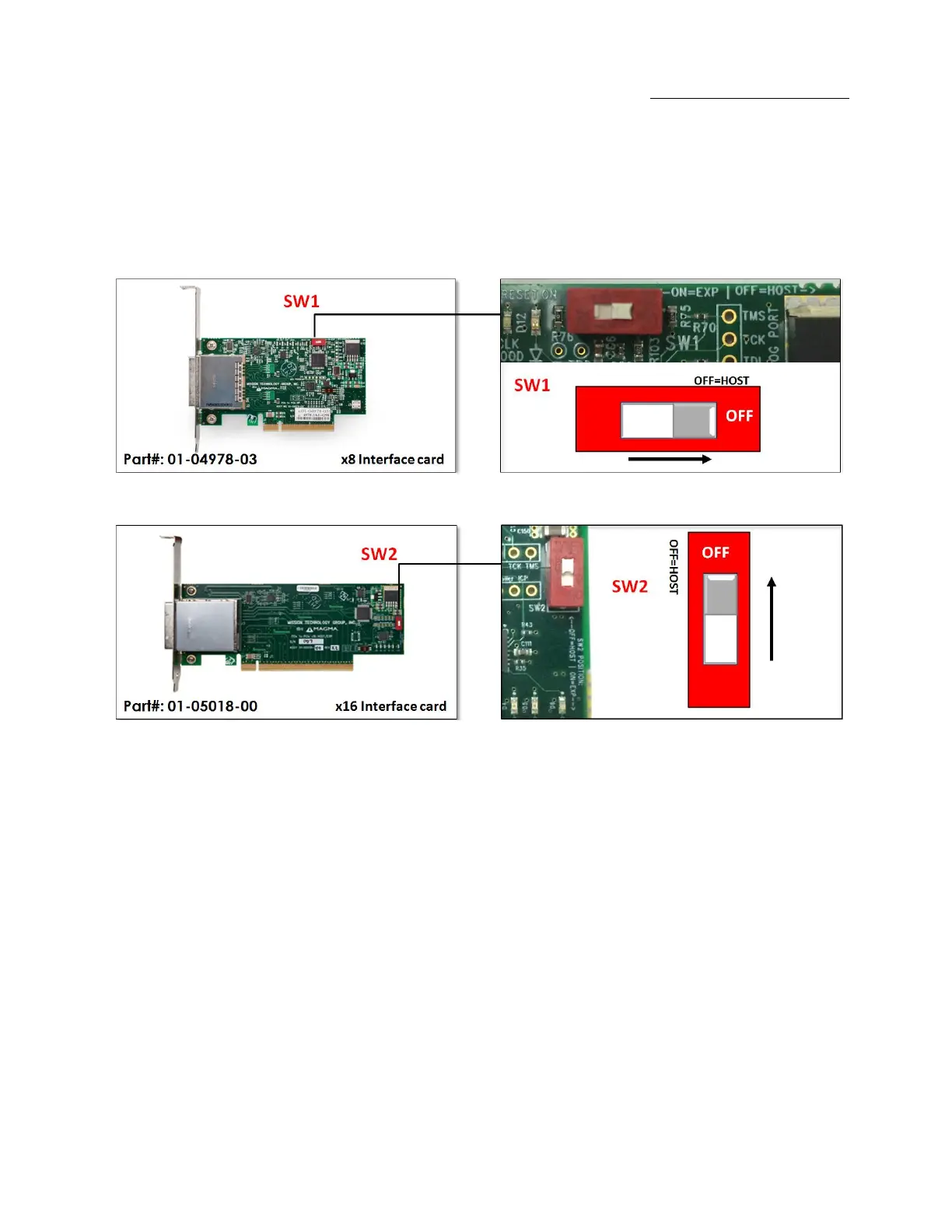 dipswitch to the ON position only if the same card is used as an “Expansion Interface” in the OSS expansion backplane. The x8 and x16 PCIe