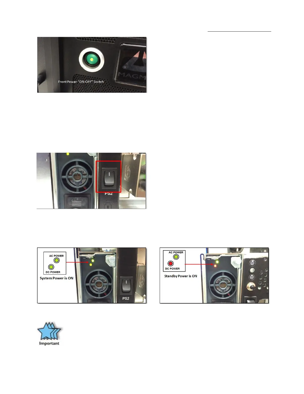 After first turning on each of the individual power switches in the back of the chassis, the entire system can then be turned on.