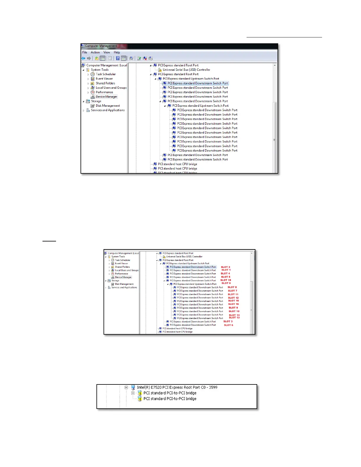 The Device Manager will display the available slots within the chassis. As reference, you can determine which slot you inserted your PCIe card in