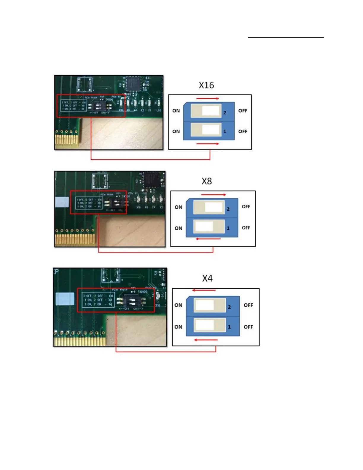 operating in is x16. In order to change the bandwidth of the card, refer to the Dipswitch labeled SW100.