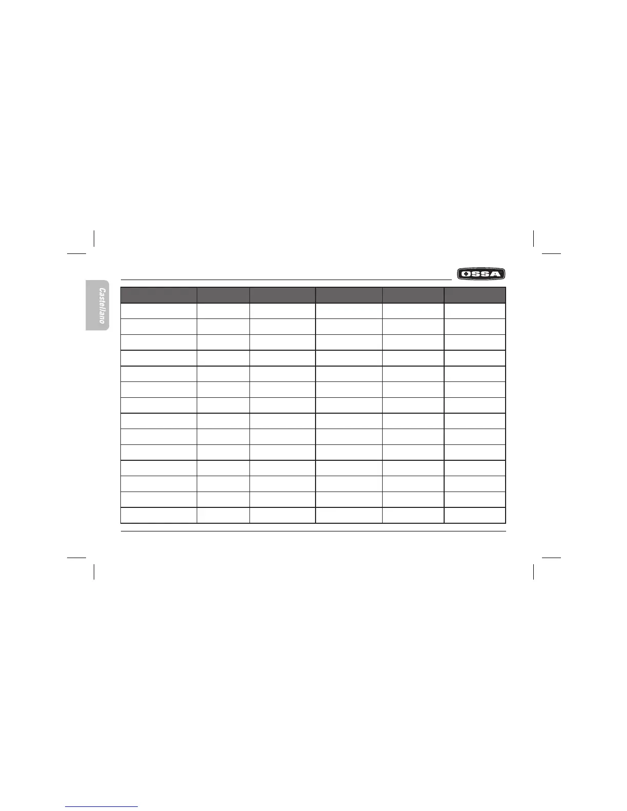 Ossa TR 280 - Cuadro de Mantenimiento