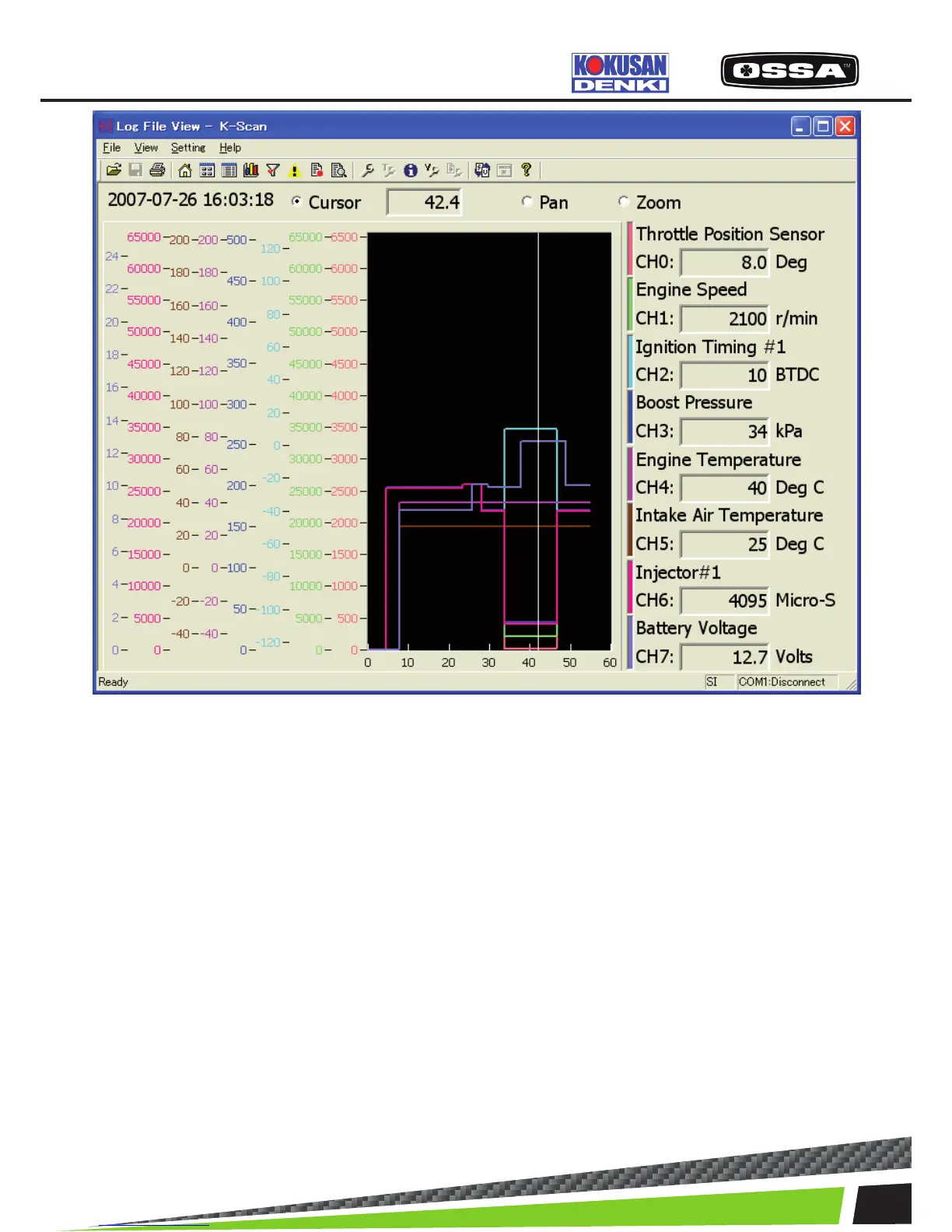 Cursor: You can drag a cursor to display the sensor values