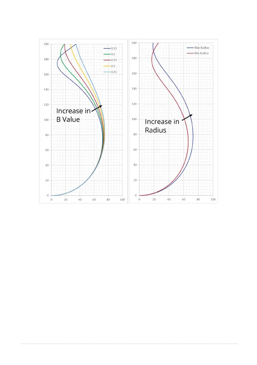Figure 10.9. Plots demonstrating how a change in tting constant or radius aects the simulated droplet shape.