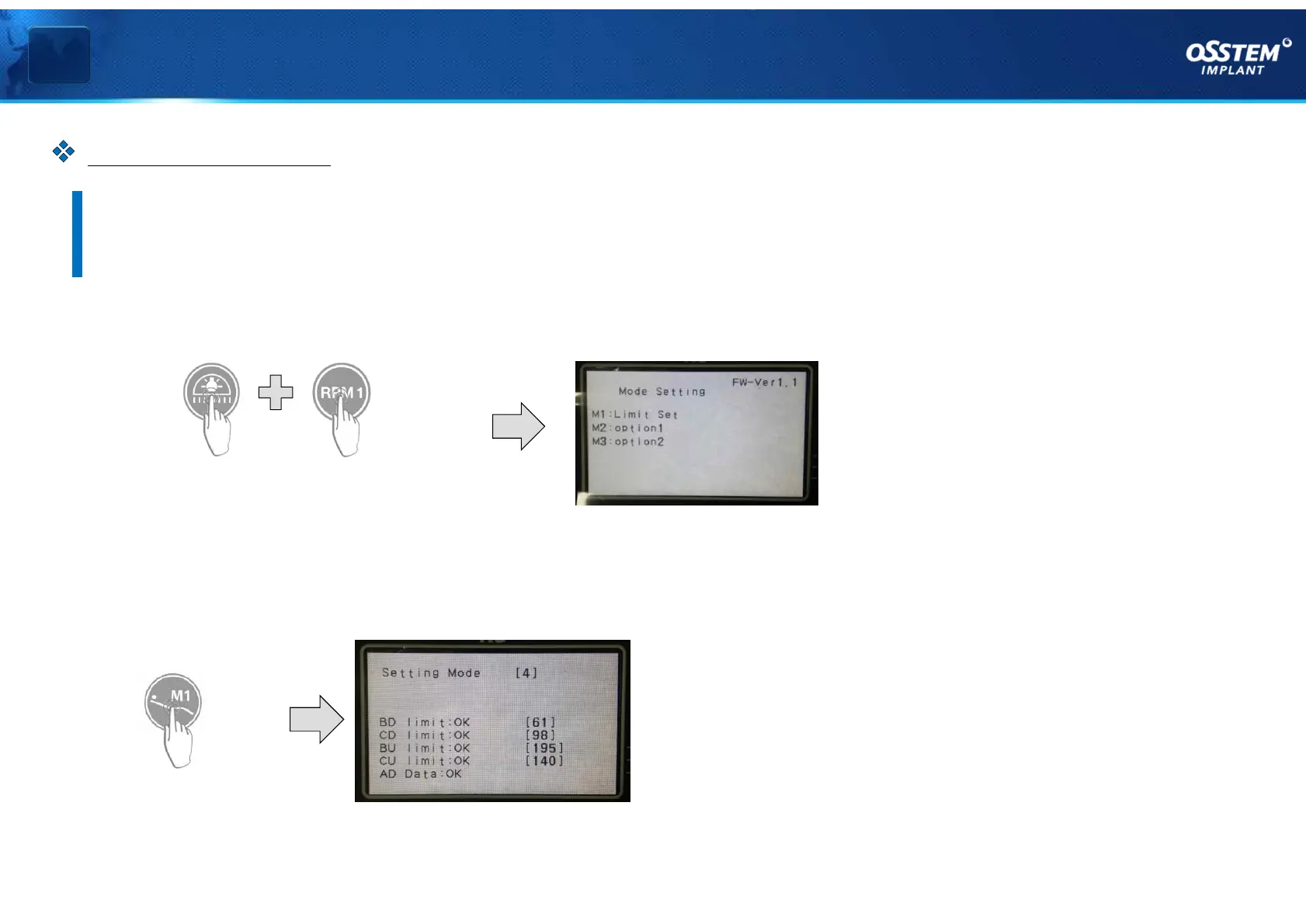 2. Press the M1 key on the membrane of Dr.Table to select a limit set.