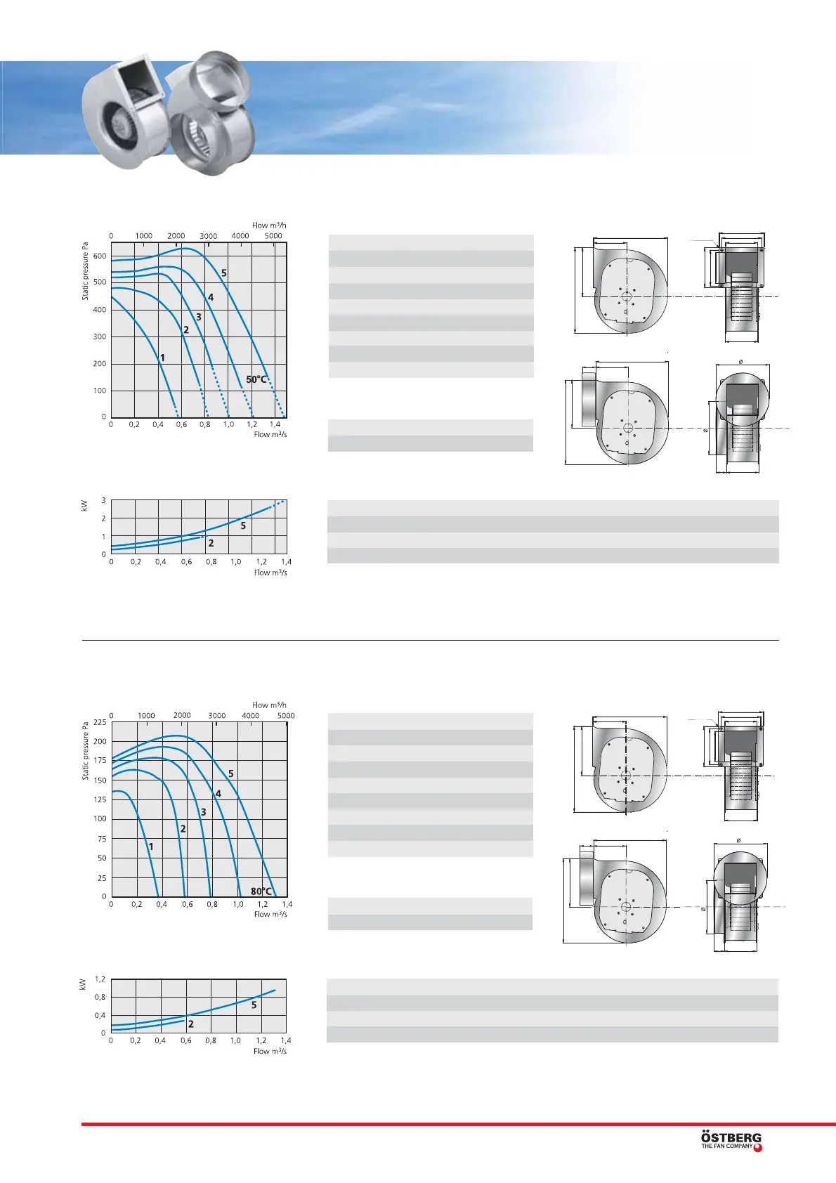 Single inlet radial fan with forward curved impeller. 3-phase