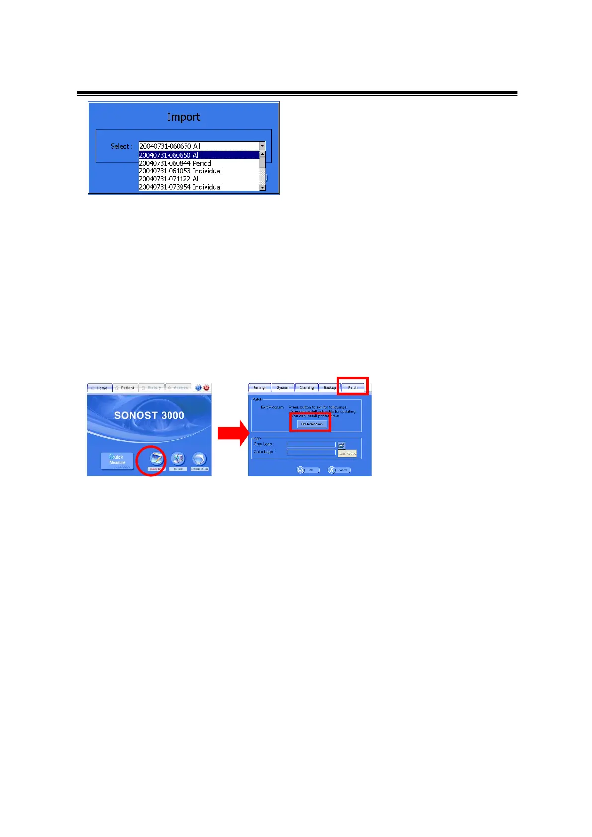 Setup>Backup>Import Window