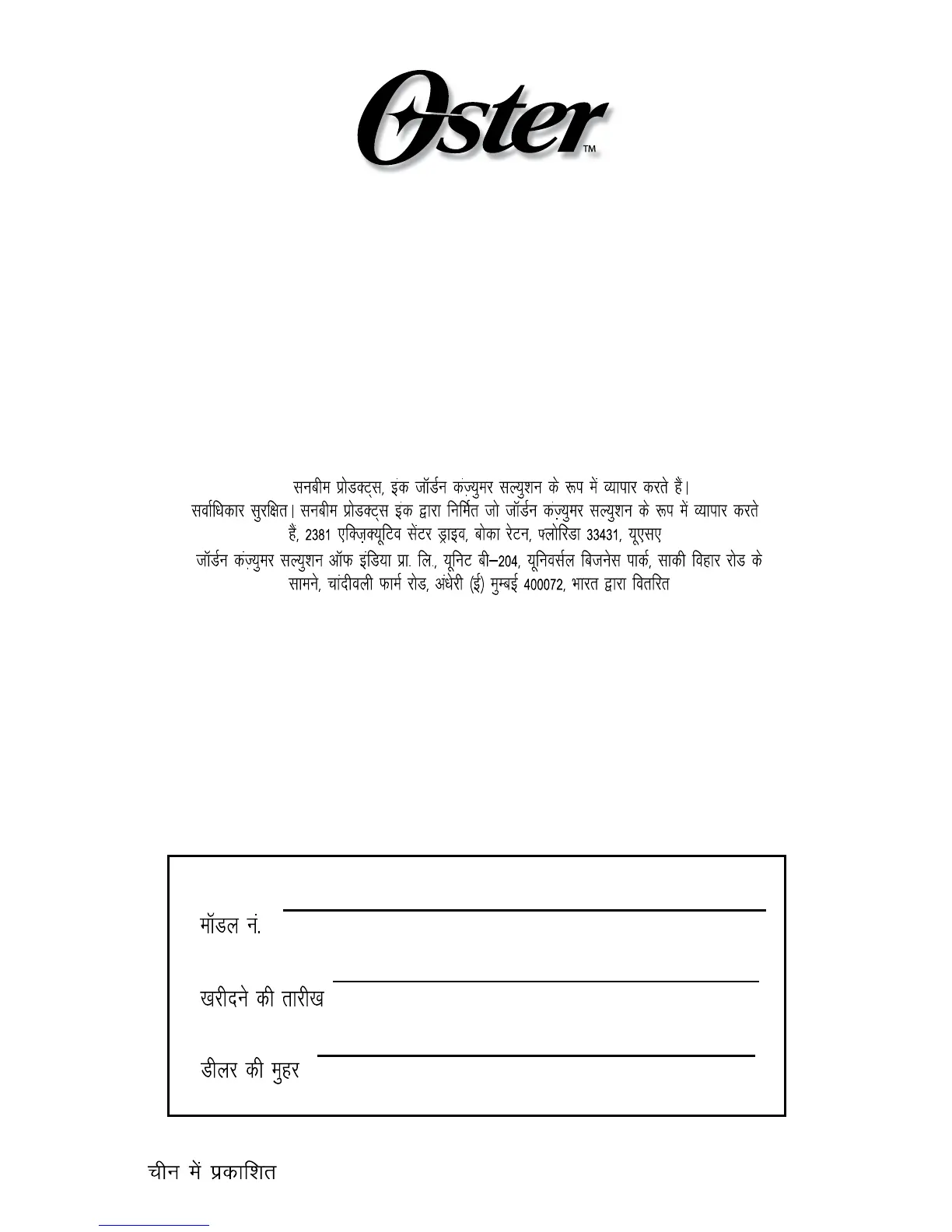 All rights reserved. Manufactured by Sunbeam Products, Inc. doing business as