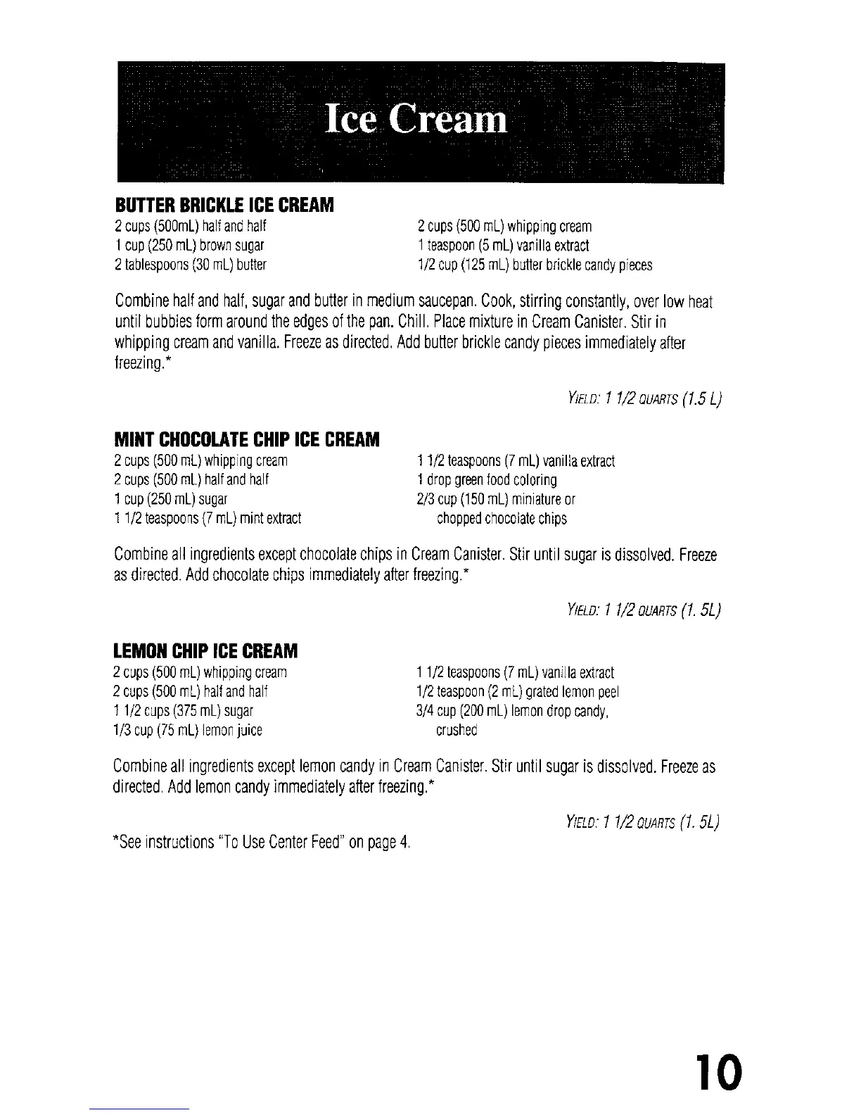 Oster 4747 - Butter Brickle Ice Cream; Mint Chocolate Chip Ice Cream; Lemon Chip Ice Cream