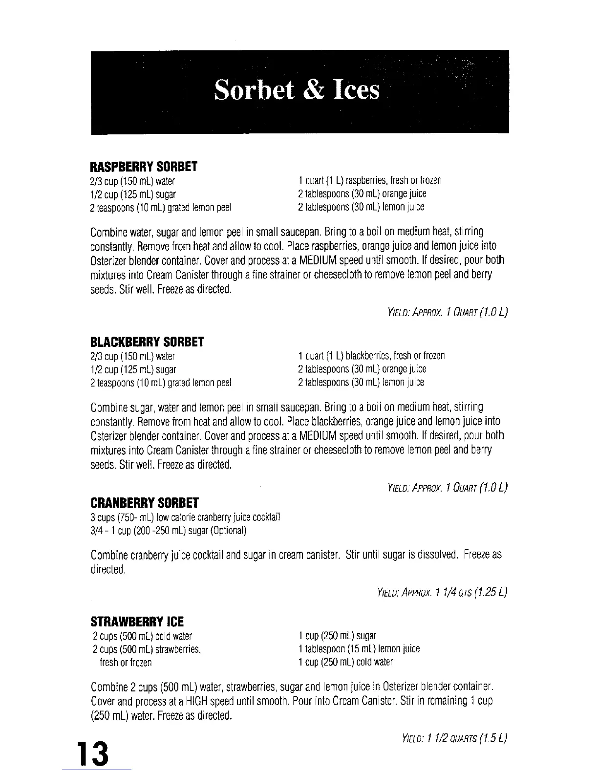 Oster 4747 - Sorbet & Ices; Raspberry Sorbet; Blackberry Sorbet; Cranberry Sorbet