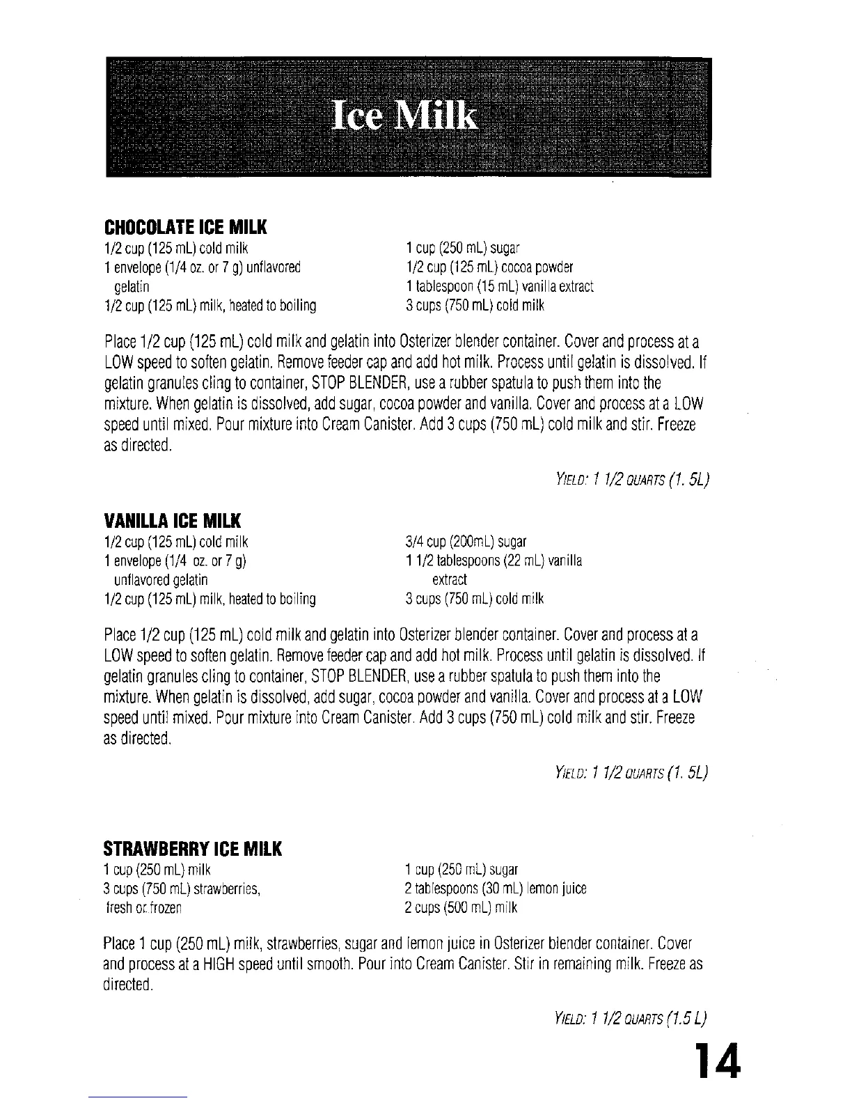 Oster 4747 - Ice Milk; Chocolate Ice Milk; Vanilla Ice Milk; Strawberry Ice Milk