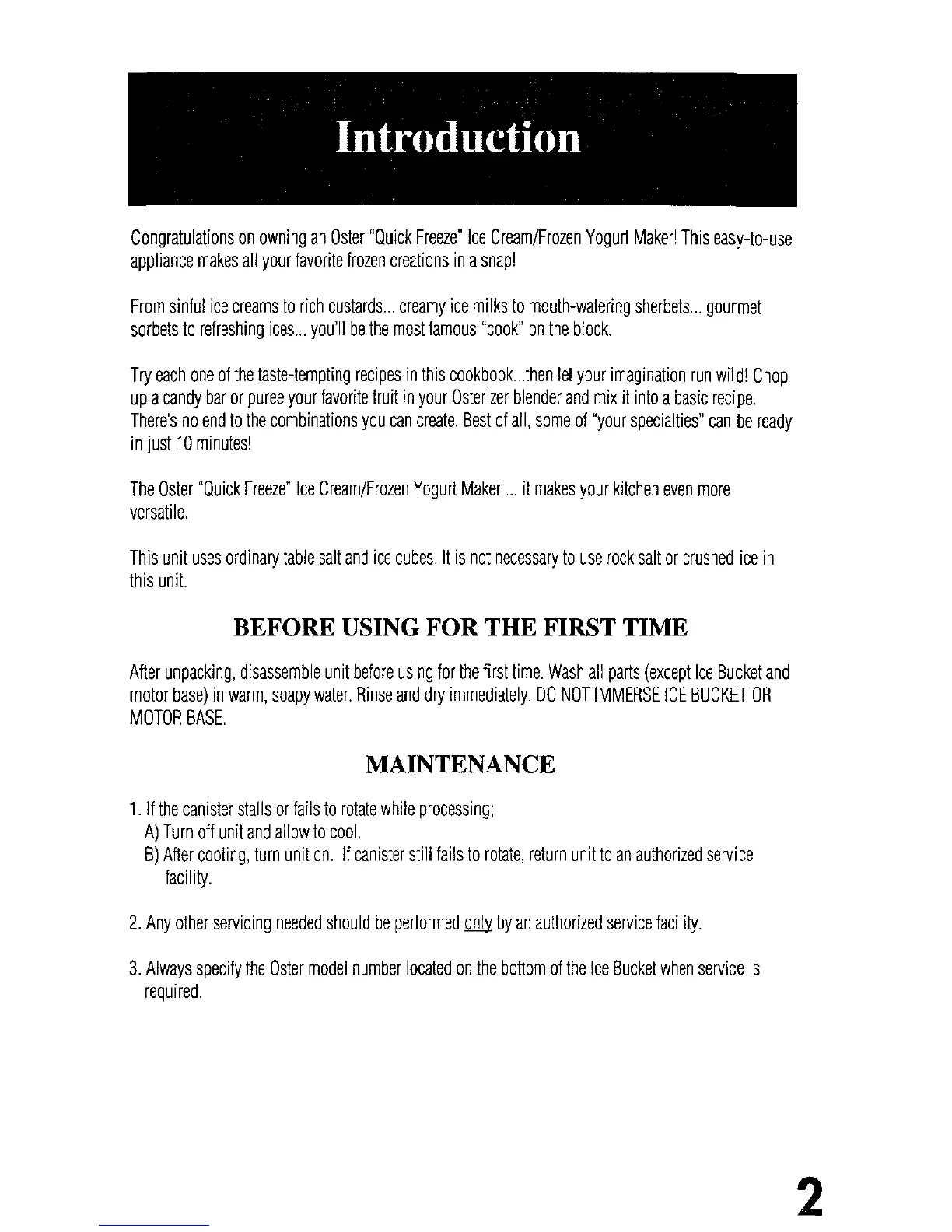 Oster 4747 - Before Using For The First Time; Maintenance; Servicing and Troubleshooting