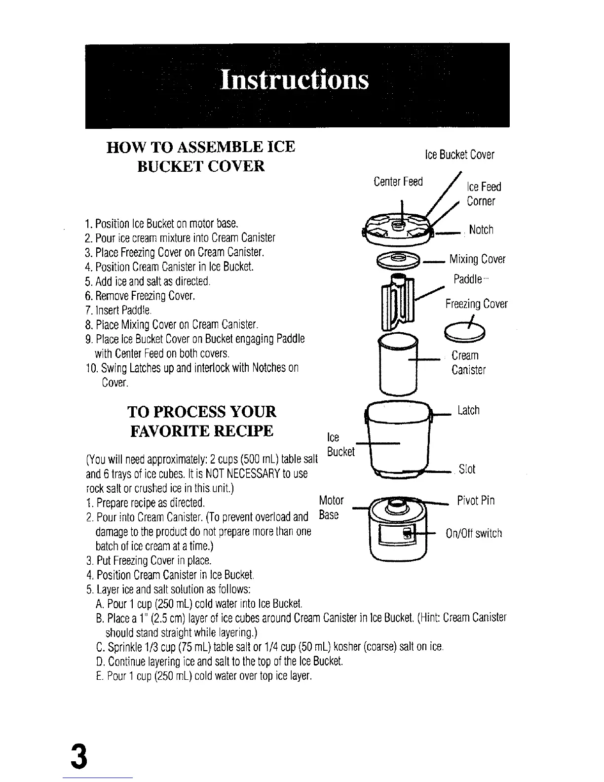 Oster 4747 - Instructions; How to Assemble Ice Bucket Cover; To Process Your Favorite Recipe