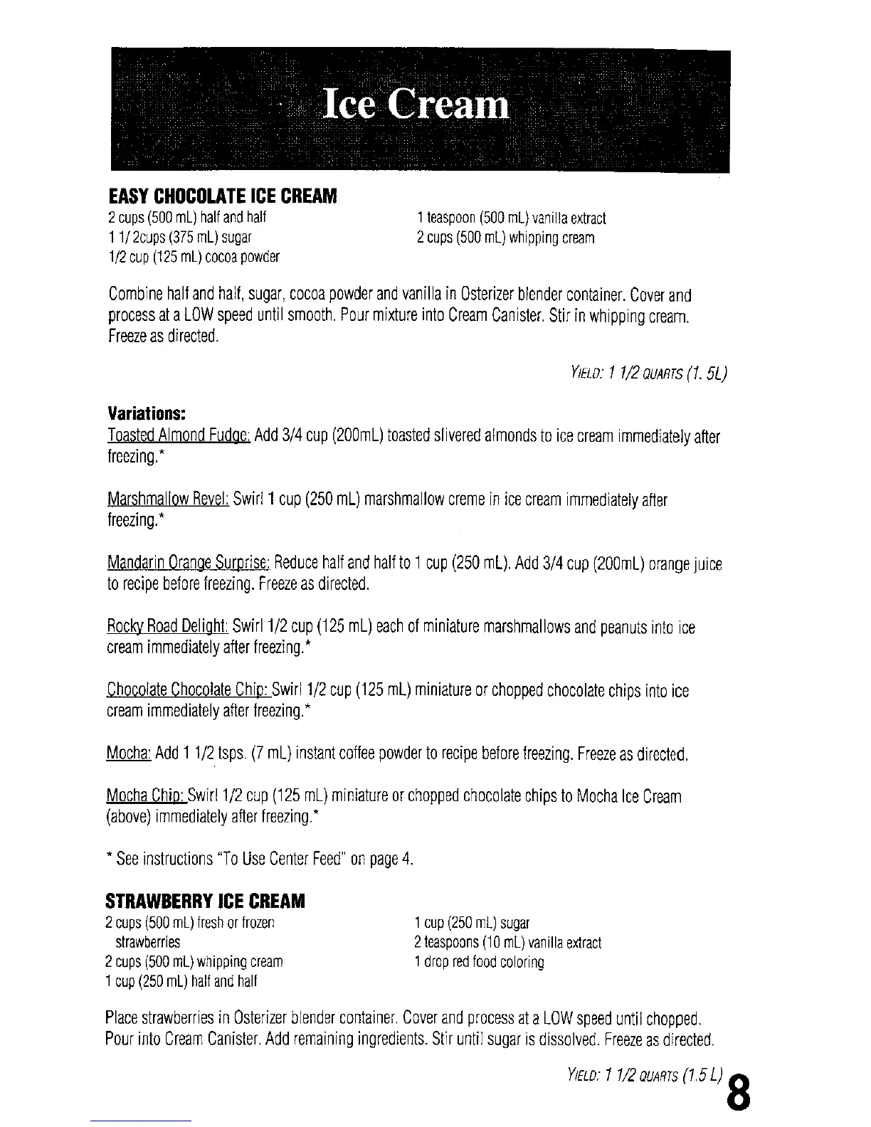 Oster 4747 - Easy Chocolate Ice Cream; Strawberry Ice Cream