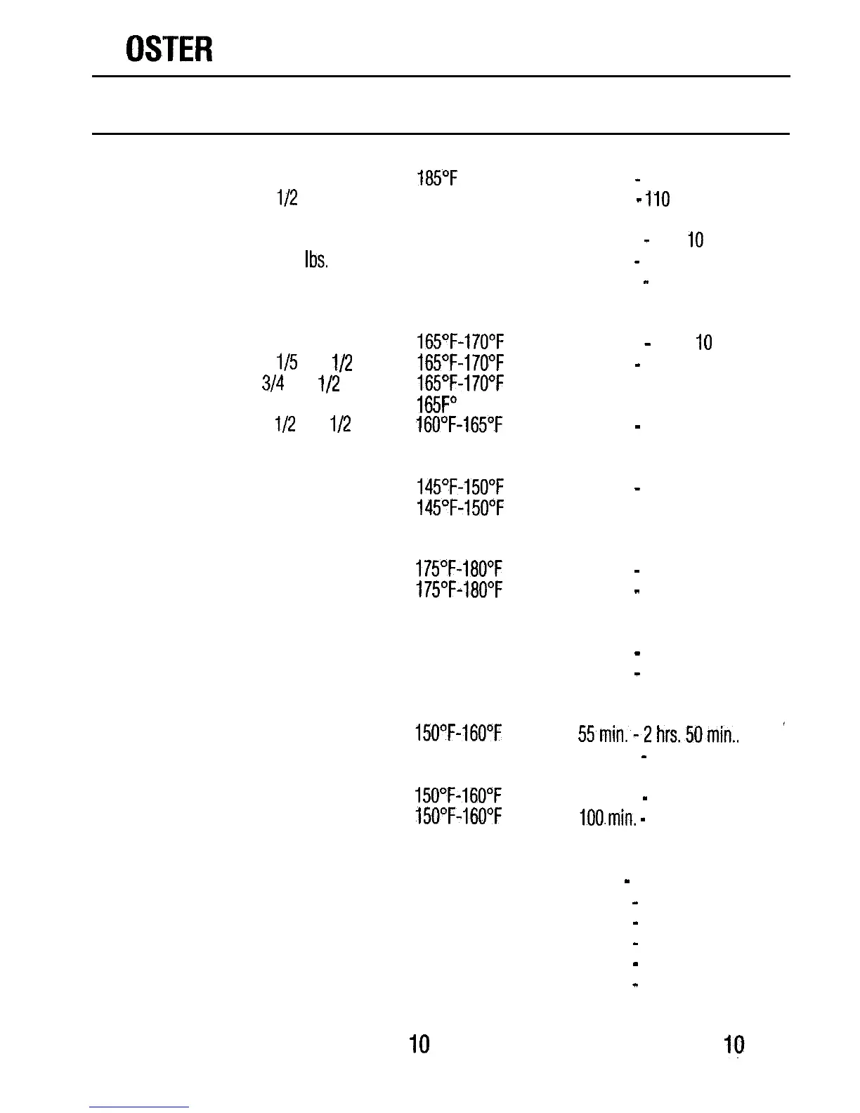 165”F-170°F 20 min.- 40 min.