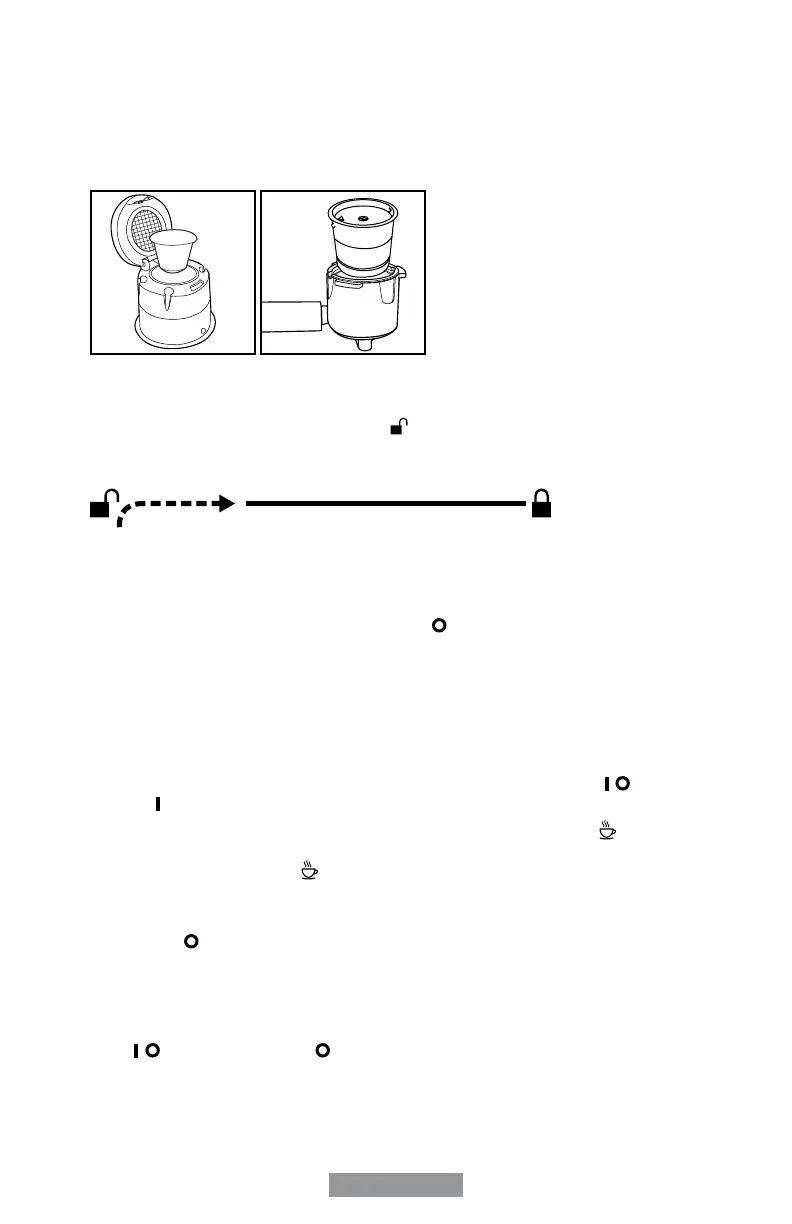 handle lines up with the unlocked icon “ ” on the brew head and fits into the groove.