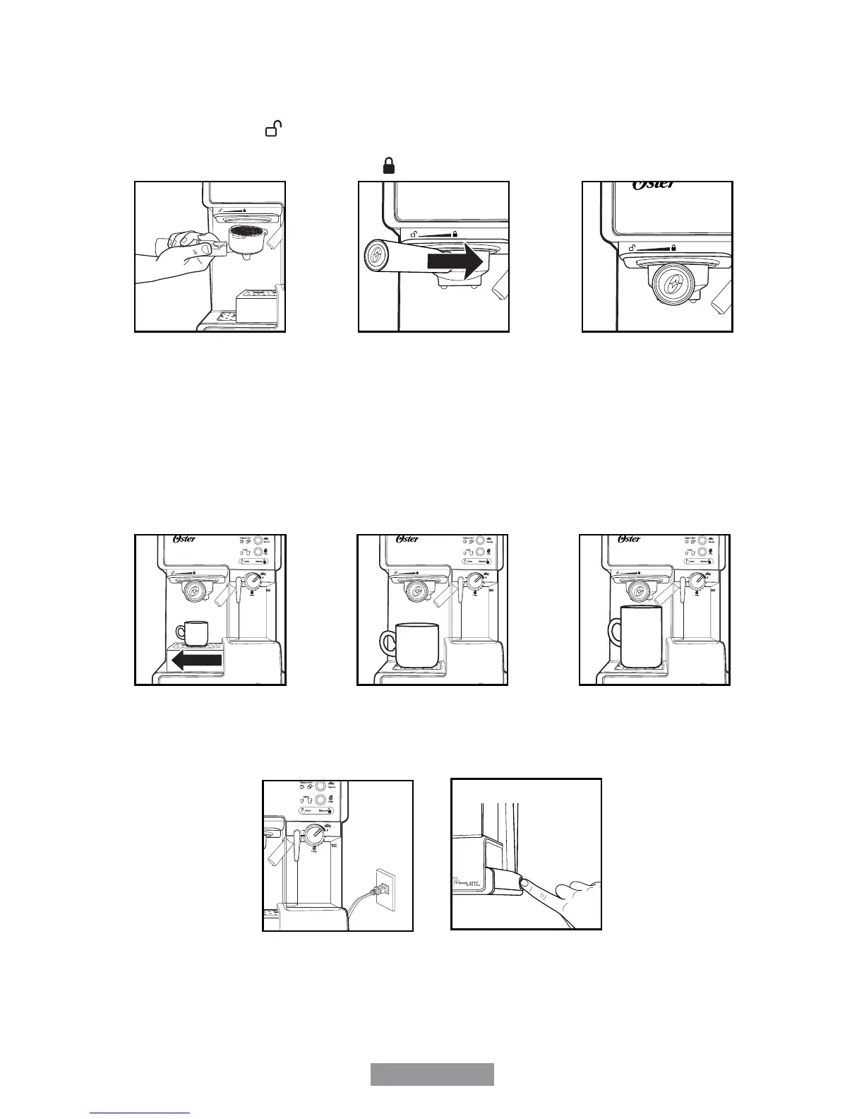 a. Positionner le porte-ltre sous la tête à infusion, attacher le porte-ltre en poussant