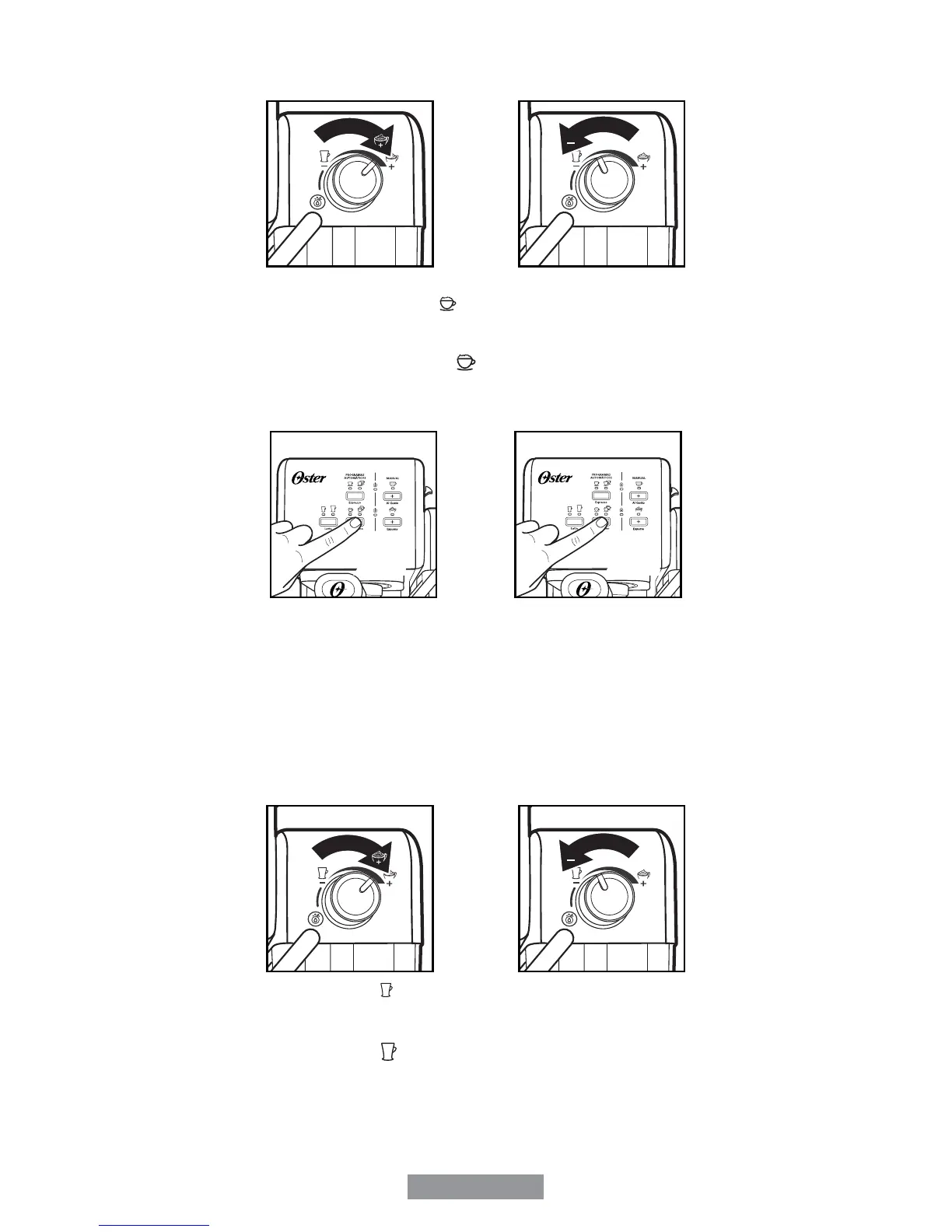 espuma (cappuccino) y hacia la izquierda para menos espuma (latte).