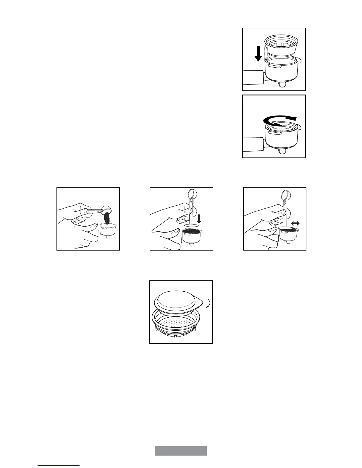 b. Prense y compacte el café molido con rmeza y de manera uniforme.