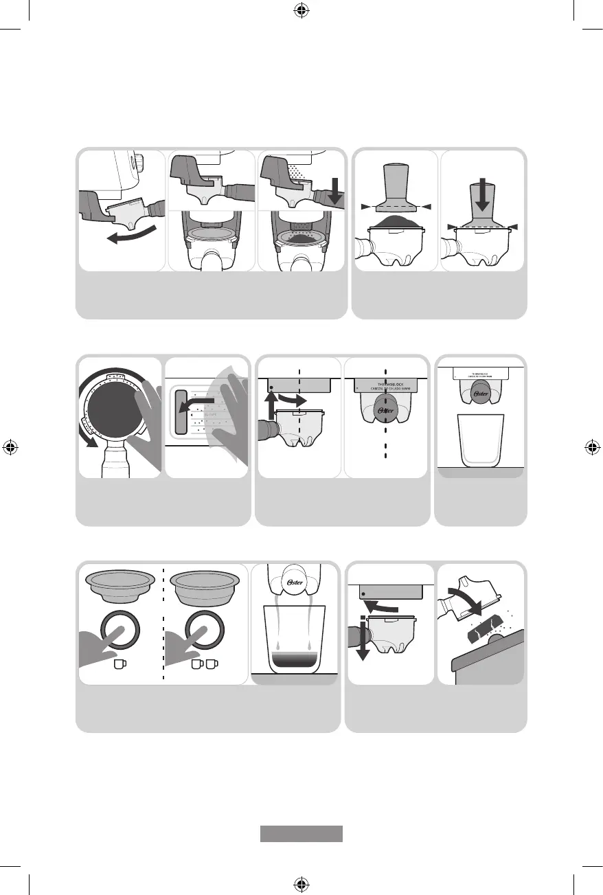 10. Posicione la Taza9. Inserte el Portaltro8. Limpie el Exceso de Café
