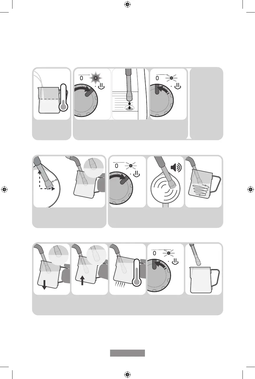 15. Posición del Tubo de Vapor 16. Comenzar a Texturizar la Leche