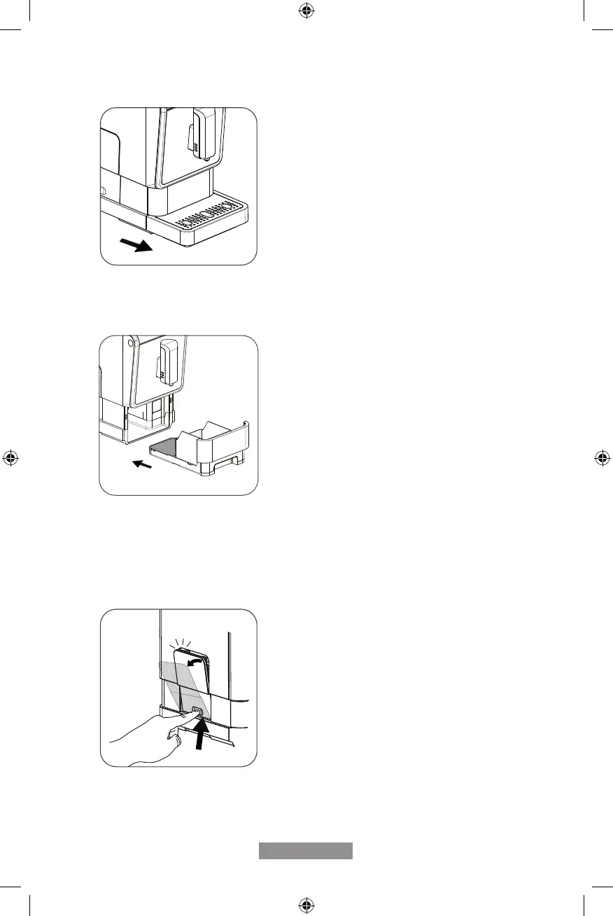 3. Desliza para abrir la bandeja de goteo interna y el depósito de posos de café.
