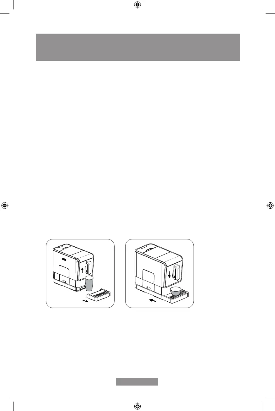 3. Place a cup under the coffee spout and adjust the height of the spout to t the cup.