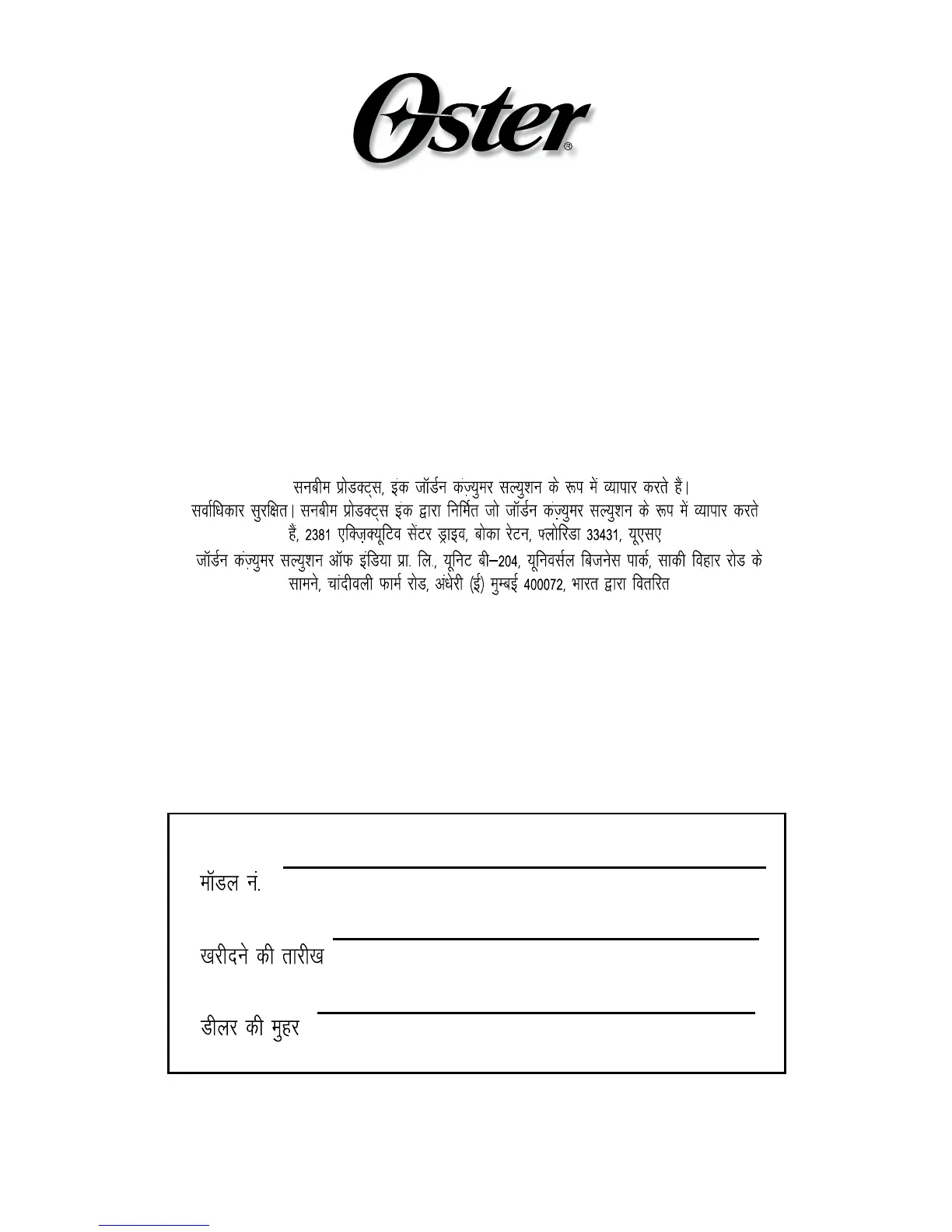 Distributed by Jarden Consumer Solutions of India Private Limited, Unit B-204,