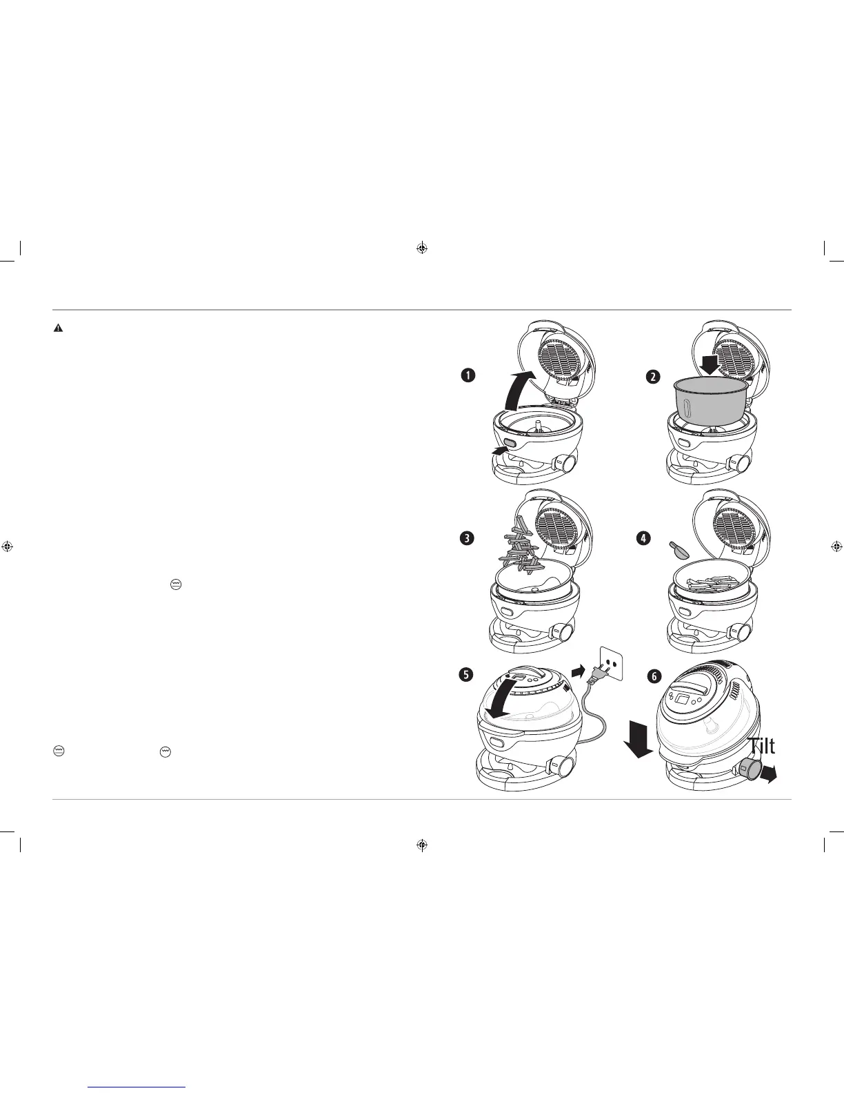 WARNING: When your Air Fryer is in the tilted position, the lid will not stay open