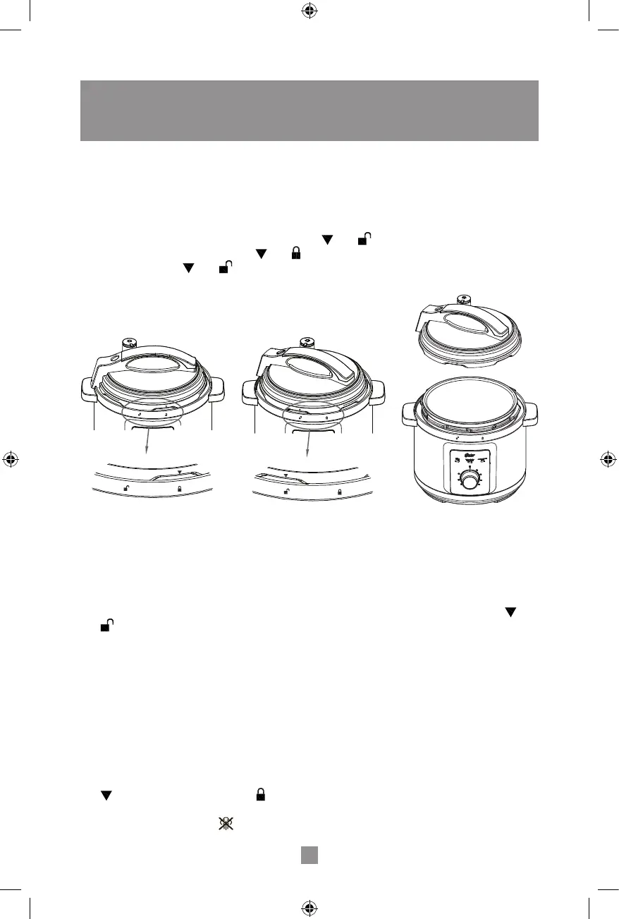 • Coloque la tapa sobre la multi-olla y alinee con . Para bloquearla, gire en