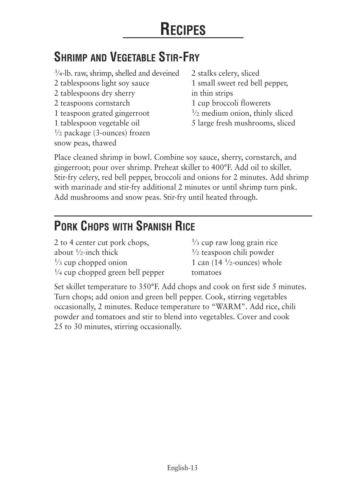 Set skillet temperature to 350°F. Add chops and cook on first side 5 minutes.