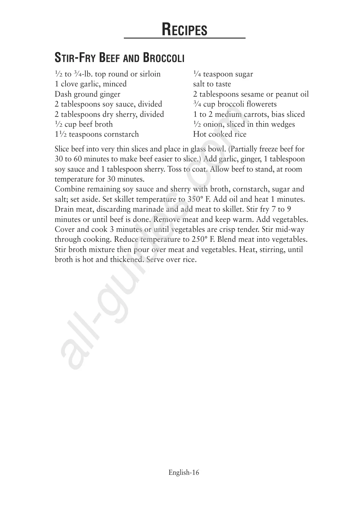 soy sauce and 1 tablespoon sherry. Toss to coat. Allow beef to stand, at room