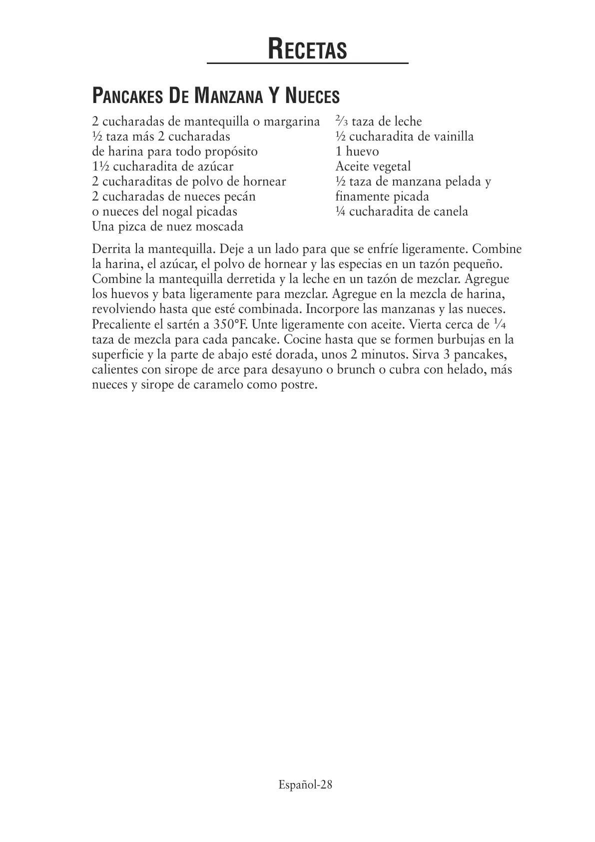 superficie y la parte de abajo esté dorada, unos 2 minutos. Sirva 3 pancakes,