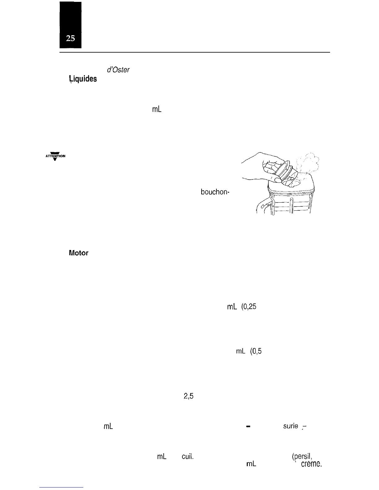plutôt le bouchon-mesure pour ajouter des ingrédients.