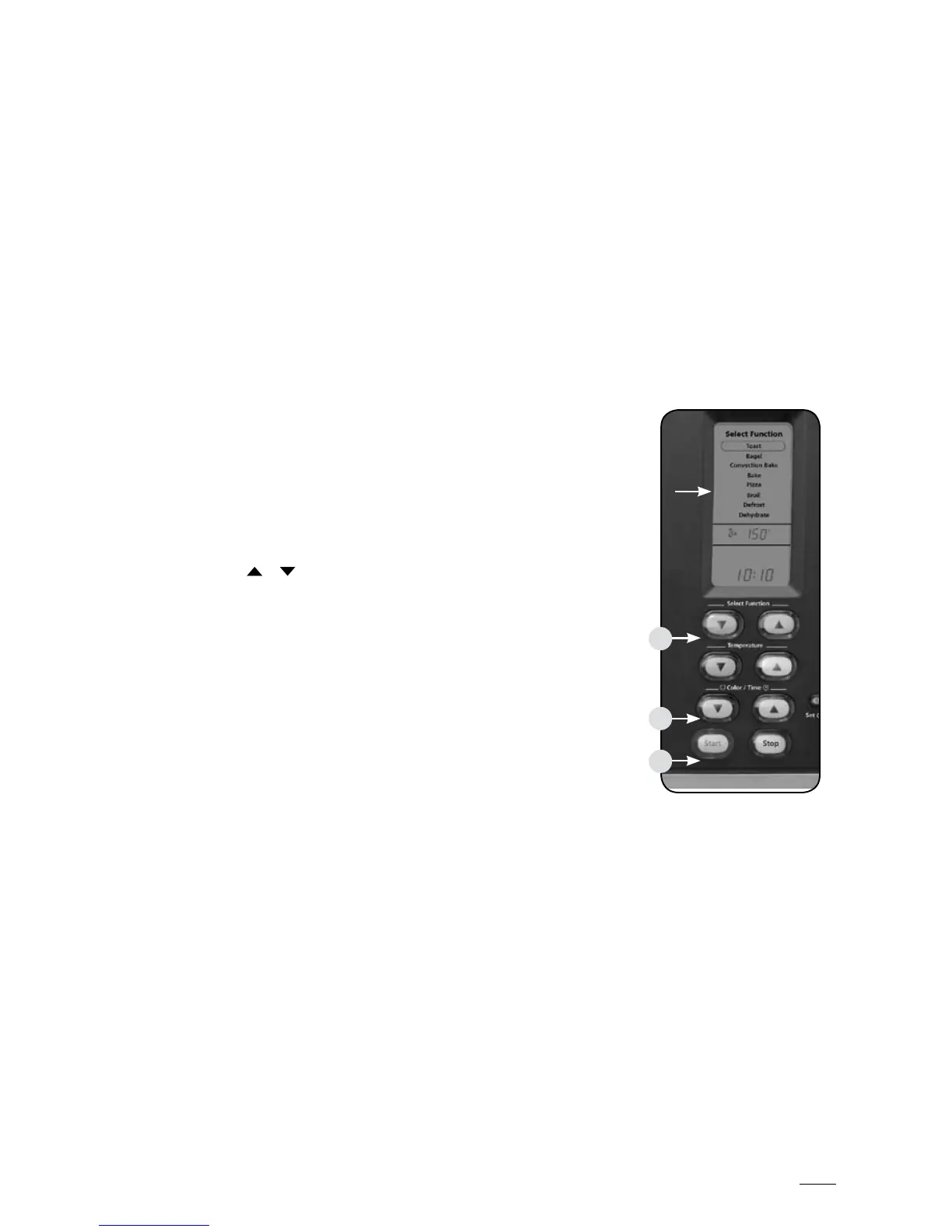 Al seleccionar la función de tostar (Paso 1), se muestra en la pantalla de LCD el indicador