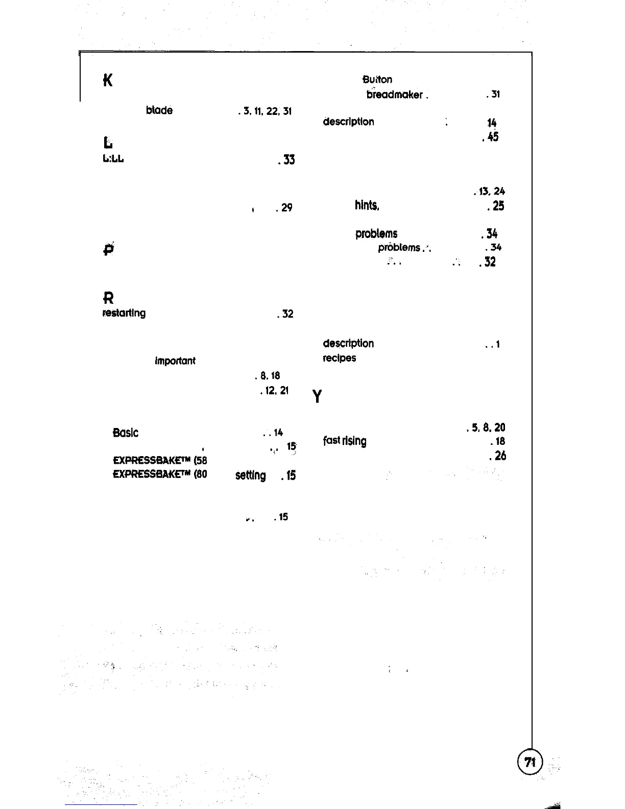 kneading blade . . . . . . . . . . . .3.11.22,31