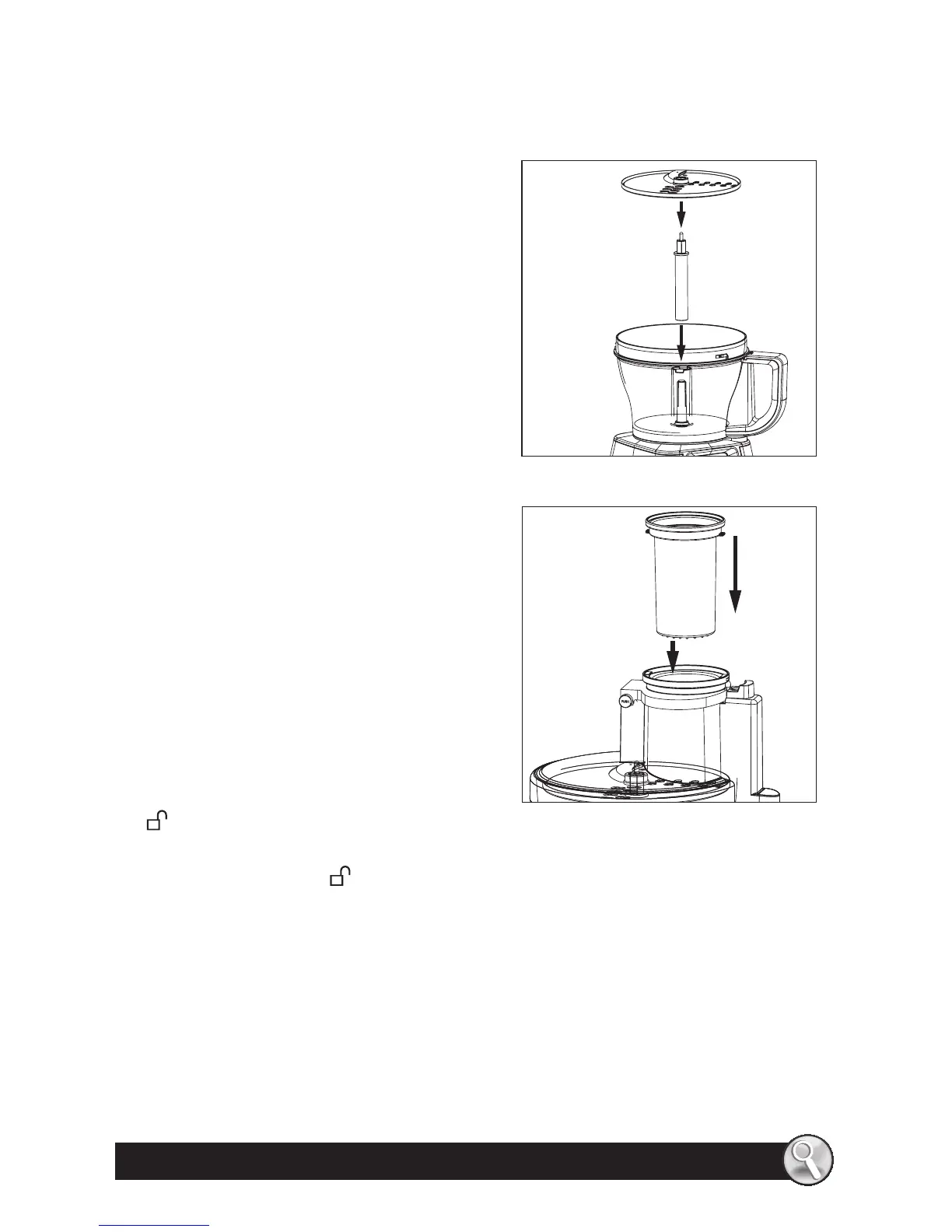 9 Carefully remove the Shredding Disc. Unlock the bowl by turning it clockwise