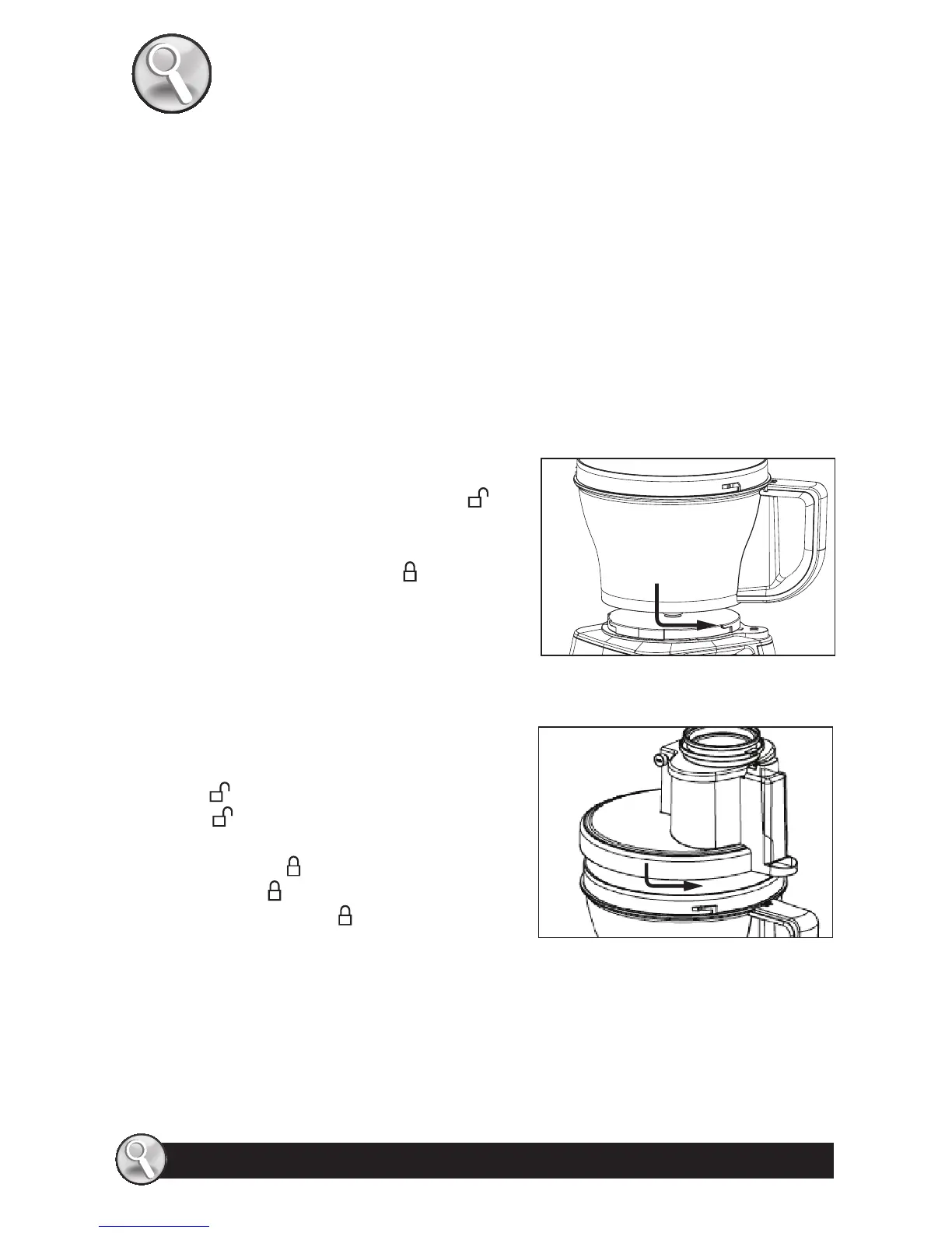 properly locked onto the bowl. Do not attempt to operate the unit without the