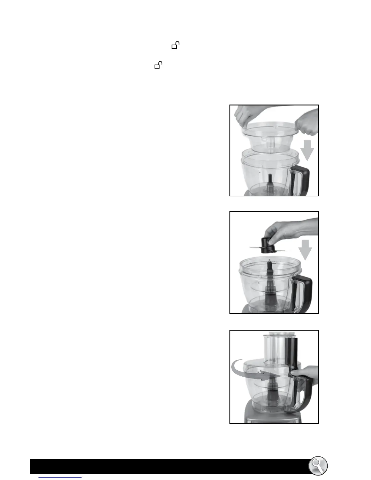 10. Hold the CHOPPING BLADE by its stem and remove. Unlock the bowl by turning it