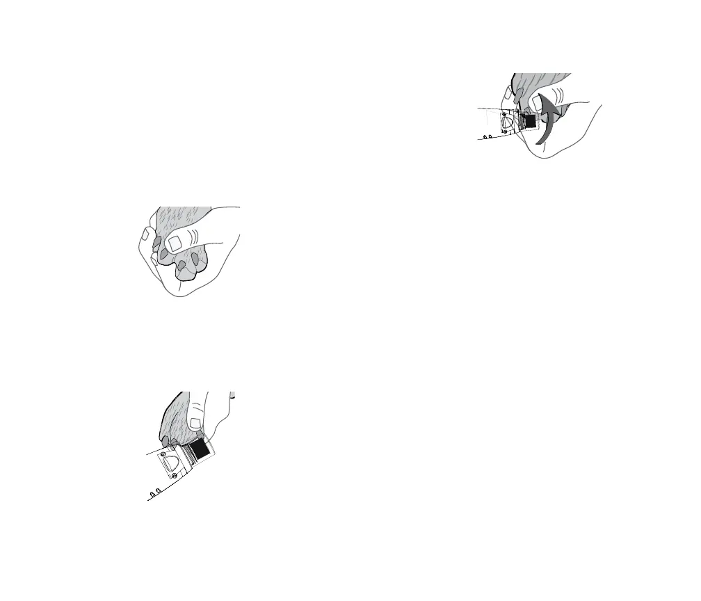 varovasti peukalolla ja etusormella niin, että kynsi työntyy