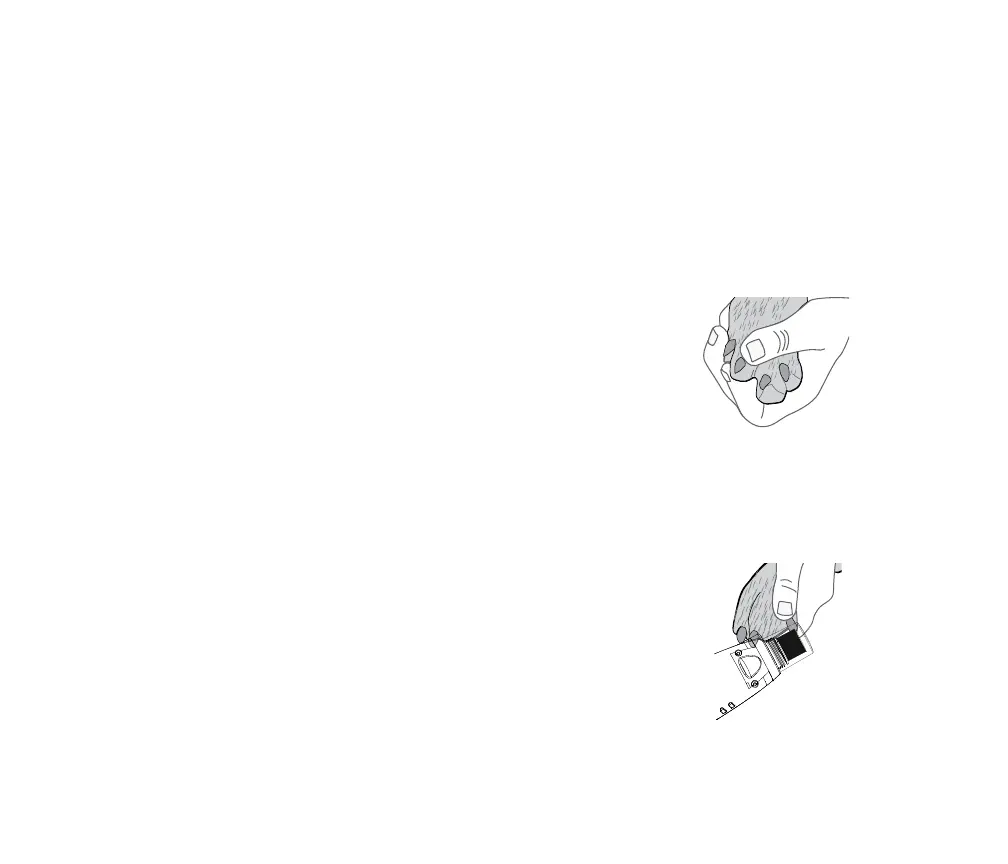 • Når du sliper rundt en pelskledd pote, børst pelsen opp og hold