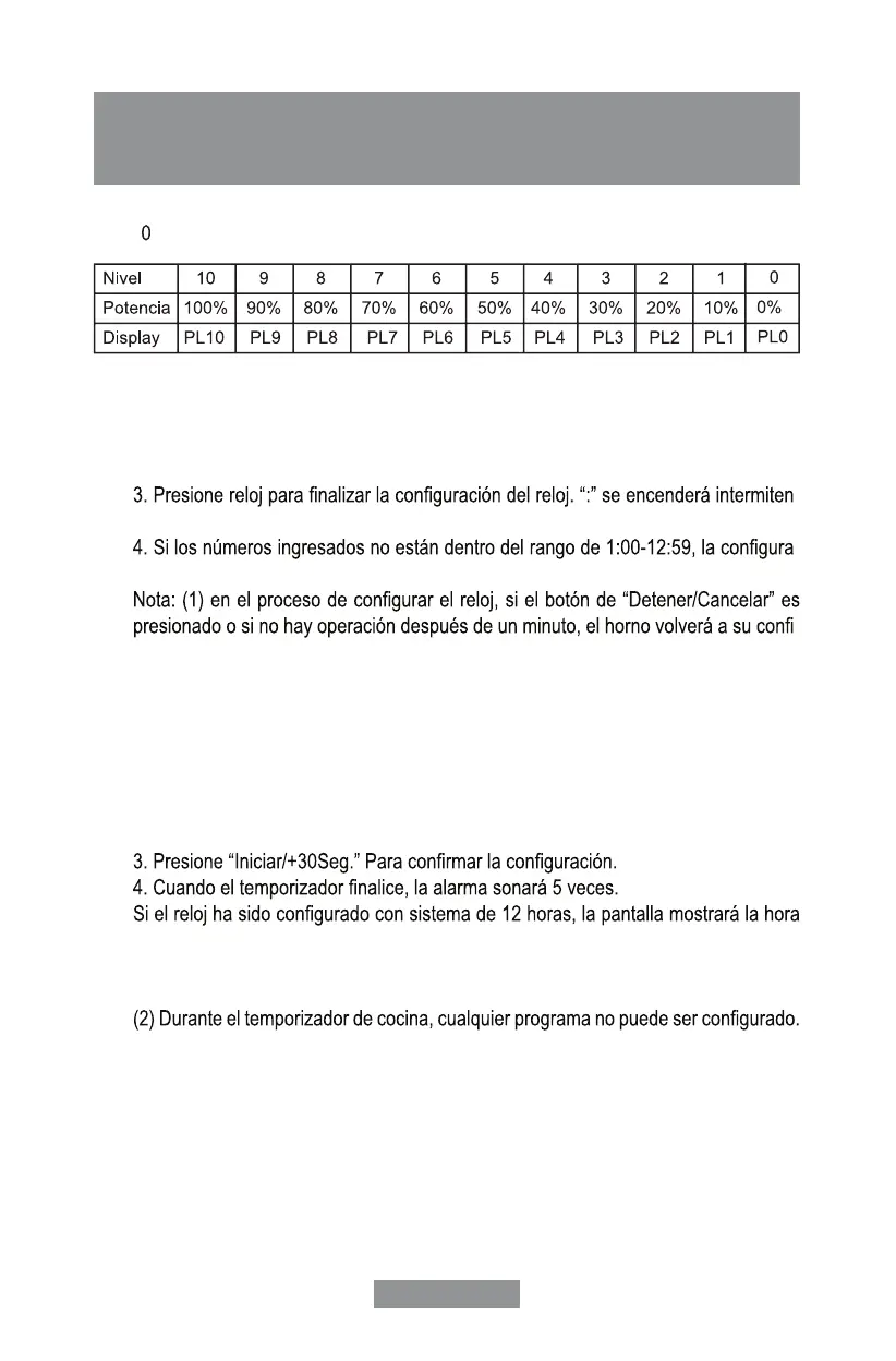 Nota: (1) El temporizador de cocina es diferente al sistema de 12 horas. El tempori-