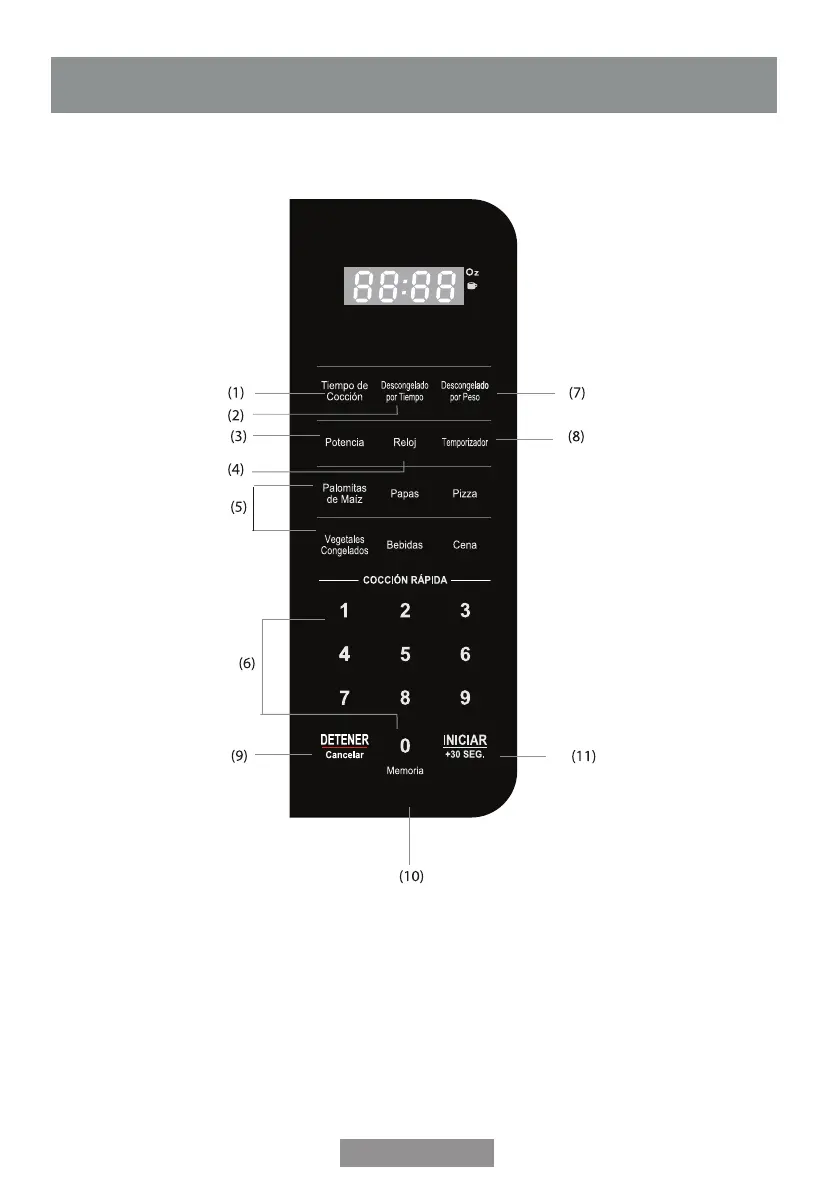 (9) Stop/Cancel: clears all previous setting pressed before cooking starts. During