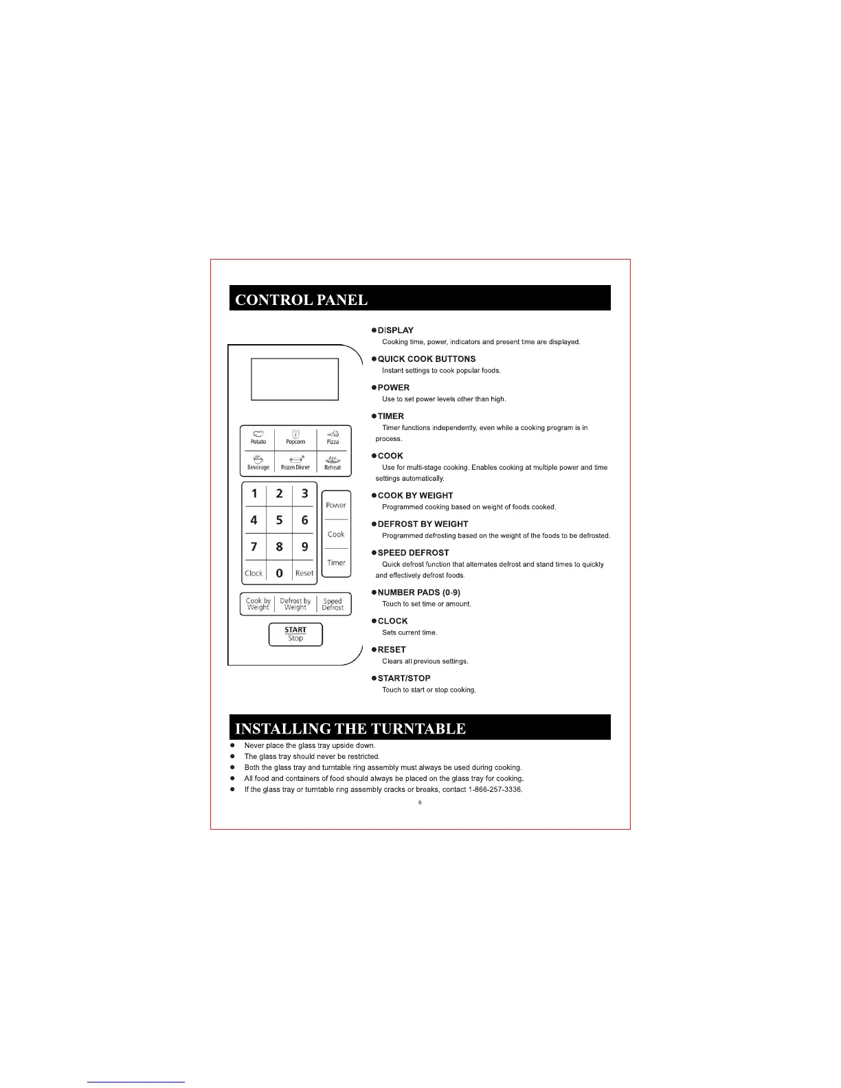 Oster OGS31102 - Control Panel; Display and Basic Operation; Cooking and Defrosting Functions; Installing the Turntable