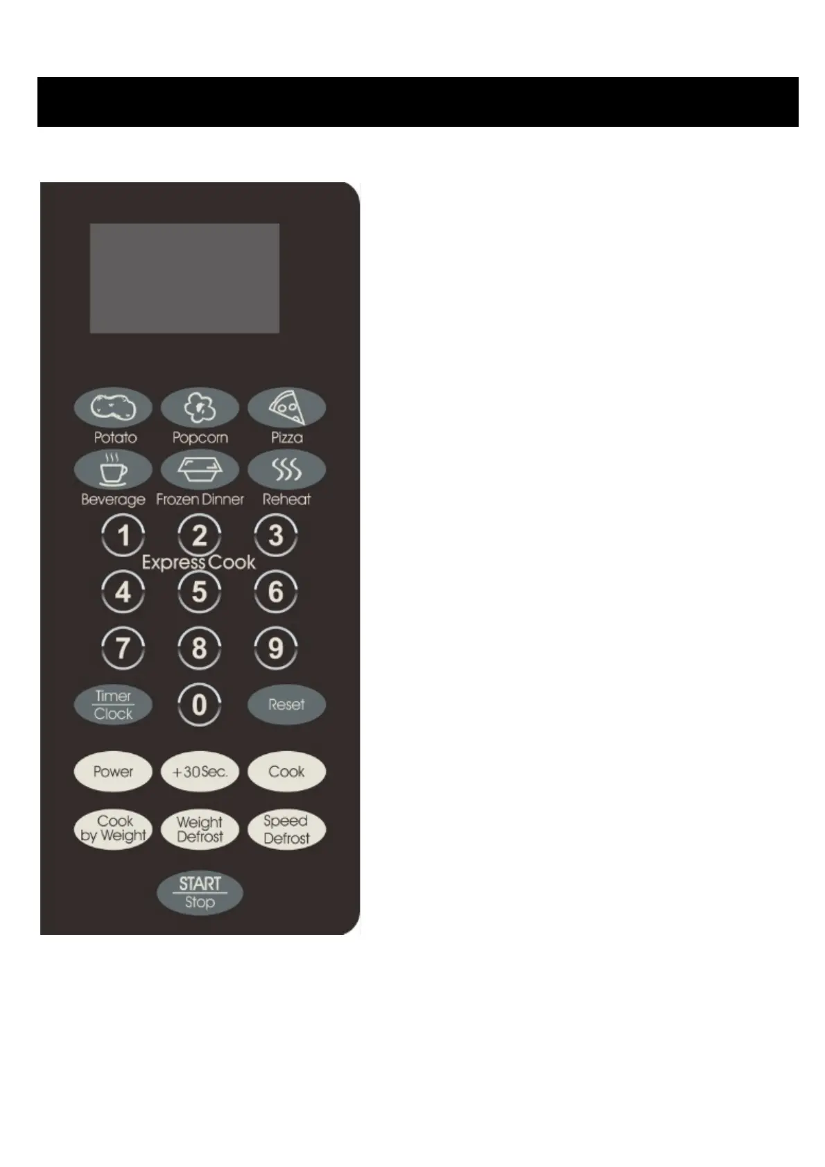 Press to set clock, cooking time or enter food weight.