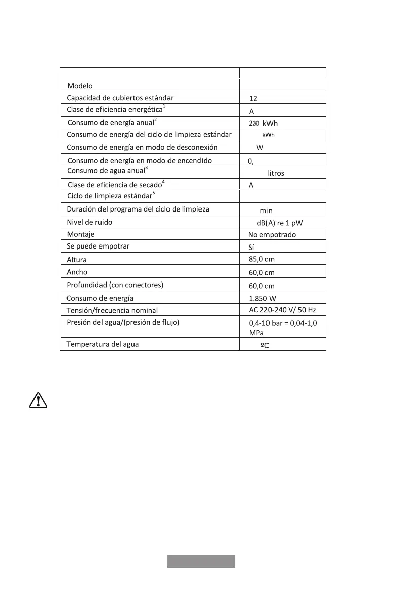 Hoja de lavavajillas doméstico según la directiva 1059/2010 de la UE: