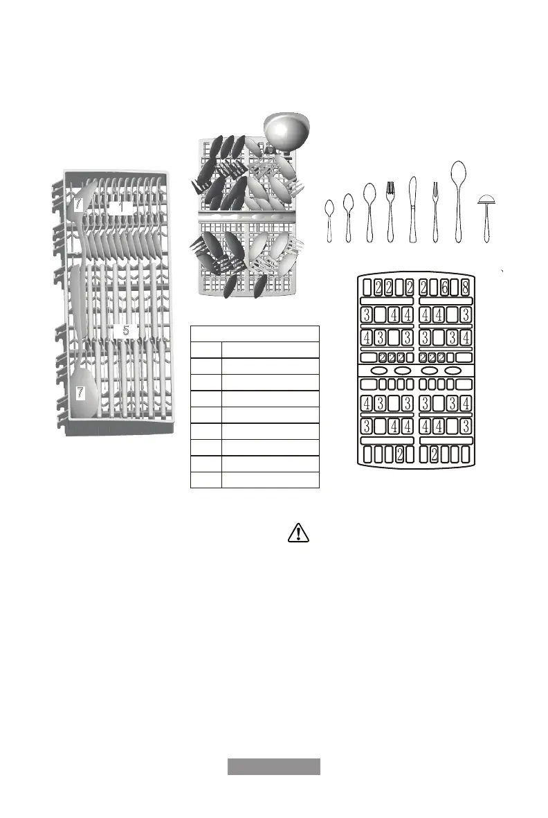 Cutlery should be placed in the cutlery basket with handles at the bottom: If the basket has