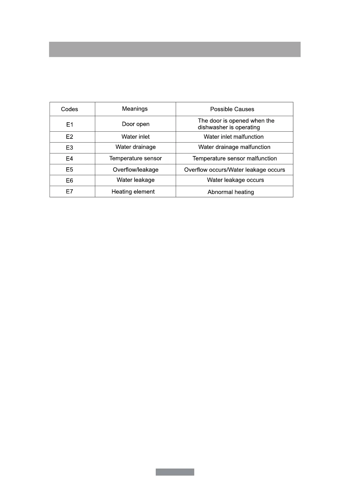 When some malfunctions happen, the appliance will display error codes to warn you.