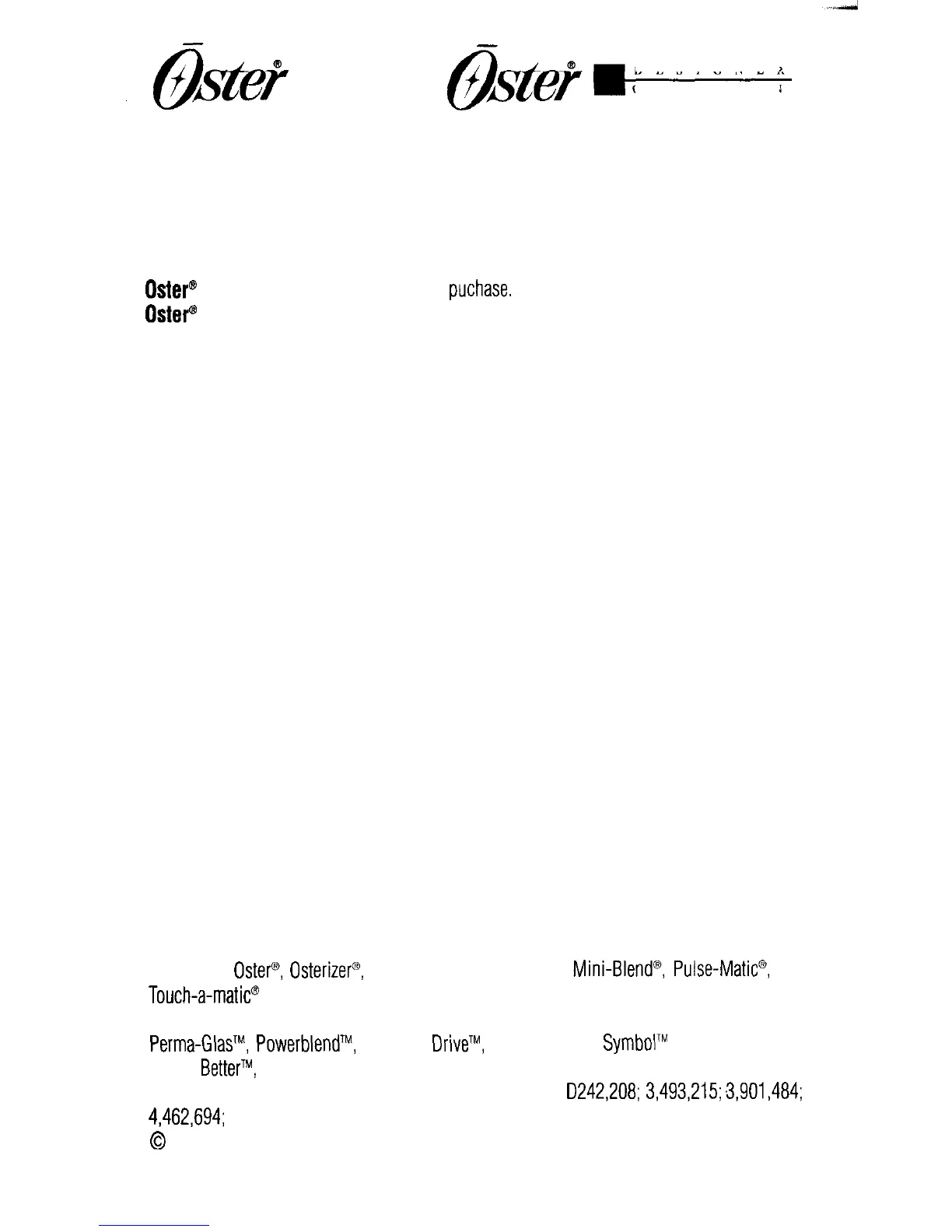 Touch-a-matic@ are registered trademarks of Sunbeam-Oster Company, Inc. or its affiliated