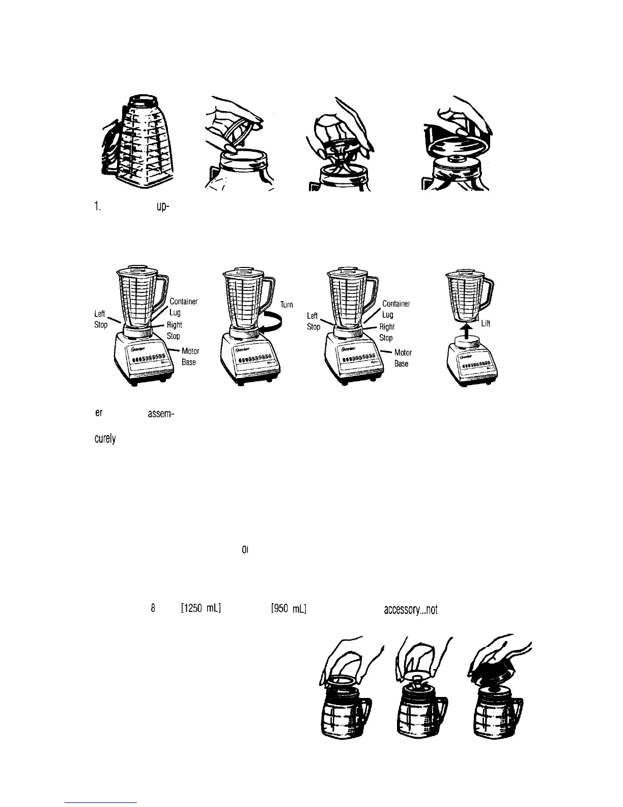 CAUTION: Follow these important steps to assemble, tighten, and mount blender container